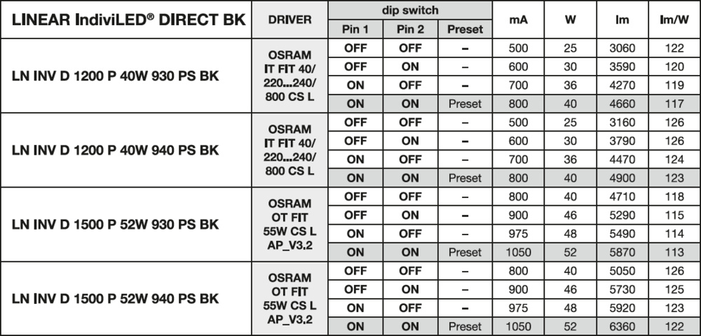 Oprawa LINEAR INDIVILED DIRECT 1500 PS 1500 P 52W 940 PS BK