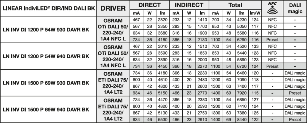 Oprawa LINEAR INDIVILED DIRECT/INDIRECT 1500 DALI 1500 P 69W 930 DAVR BK