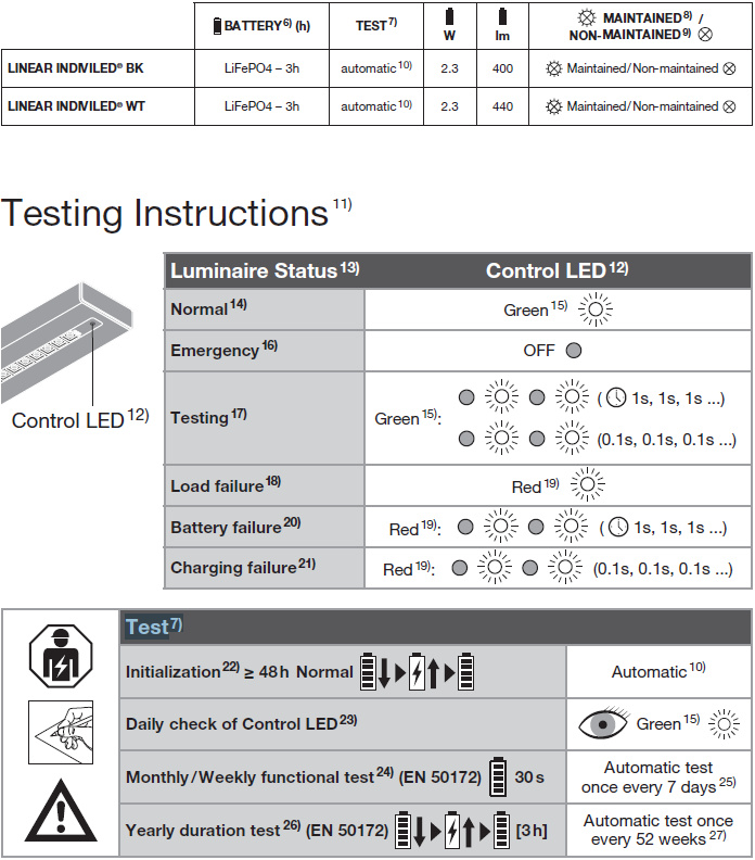 | System zasilania awaryjnego: | Centralna bateria (CB) i własna bateria |