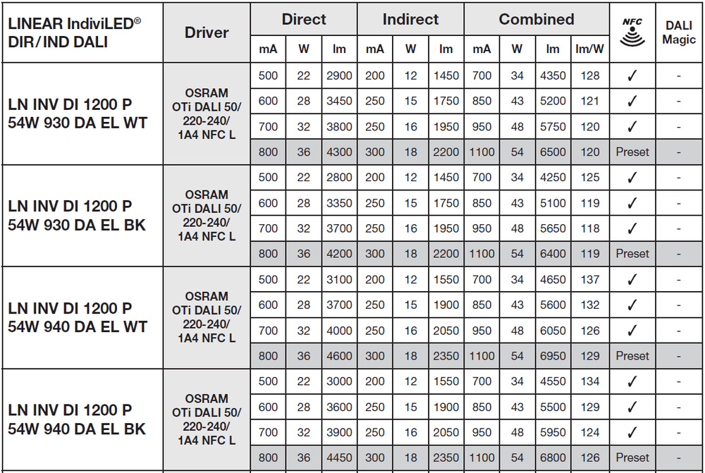 Oprawa LINEAR INDIVILED DI 1200 P 54W 940 DAVR EMBK LEDV