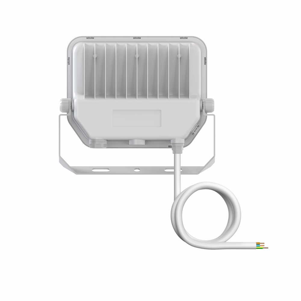 Uniwersalny naświetlacz o strumieniu świetlnym do 6000 lm. Cechy produktu: Wysoka skuteczność świetlna: do 145 lm/W. Stopień ochrony: IP66. Fabrycznie zainstalowany, elastyczny przewód o długości 1 m (H05RN-F), 3 x 1,0 mm². Odbłyśnik, symetryczny rozsył światła z kątem rozsyłu 100° x 100°. Zaciski montażowe z kątem 30° i szerokim obszarem obrotu. Zalety produktu: Zawór odpowietrzający optymalizujący wymianę powietrza, bez uszczerbku dla stopnia ochrony IP. Wysoka wszechstronność dzięki wybieranym stopniom mocy (Multi Lumen) na obudowie. Solidna dławnica kablowa ze zintegrowaną funkcją bariery wodnej. Bezpieczne i bardzo równomierne oświetlenie dzięki wykonanemu ze szkła hartowanego matowemu kloszowi. Jasna, odporna i trwała. Oszczędność energii aż do 90% (w porównaniu z naświetlaczami z lampami halogenowymi). Brak górnego współczynnika rozsyłu światła (ULOR 0%) w przypadku zamontowania pod kątem 0°. Obszary zastosowań: Zamiennik naświetlaczy do żarówek halogenowych. Zastosowania zewnętrzne (IP66). Konstrukcja zgodna z normą EN 60598-2-24 dotyczącą zagrożenia pożarowego, np. poprzez nagromadzenie pyłów. Strefy publiczne. Elewacje budynków. Tereny budowy. Parking. Ogrody i balkony. Porady dotyczące bezpieczeństwa: Maks. powierzchnia obciążenia wiatrem 0,025 m².