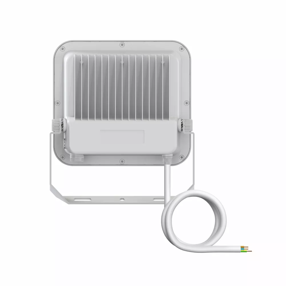 Uniwersalny naświetlacz o strumieniu świetlnym do 10000 lm. Cechy produktu: Wysoka skuteczność świetlna: do 150 lm/W. Stopień ochrony: IP66. Fabrycznie zainstalowany, elastyczny przewód o długości 1 m (H05RN-F), 3 x 1,0 mm². Odbłyśnik, symetryczny rozsył światła z kątem rozsyłu 100° x 100°. Zaciski montażowe z kątem 30° i szerokim obszarem obrotu. Zalety produktu: Zawór odpowietrzający optymalizujący wymianę powietrza, bez uszczerbku dla stopnia ochrony IP. Wysoka wszechstronność dzięki wybieranym stopniom mocy (Multi Lumen) na obudowie. Solidna dławnica kablowa ze zintegrowaną funkcją bariery wodnej. Bezpieczne i bardzo równomierne oświetlenie dzięki wykonanemu ze szkła hartowanego matowemu kloszowi. Jasna, odporna i trwała. Oszczędność energii aż do 90% (w porównaniu z naświetlaczami z lampami halogenowymi). Brak górnego współczynnika rozsyłu światła (ULOR 0%) w przypadku zamontowania pod kątem 0°. Obszary zastosowań: Zamiennik naświetlaczy do żarówek halogenowych. Zastosowania zewnętrzne (IP66). Konstrukcja zgodna z normą EN 60598-2-24 dotyczącą zagrożenia pożarowego, np. poprzez nagromadzenie pyłów. Strefy publiczne. Elewacje budynków. Tereny budowy. Parking. Porady dotyczące bezpieczeństwa: Maks. powierzchnia obciążenia wiatrem 0,045 m².