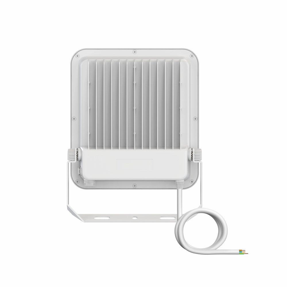 Uniwersalny naświetlacz o strumieniu świetlnym do 15000 lm. Cechy produktu: Wysoka skuteczność świetlna: do 150 lm/W. Stopień ochrony: IP66. Fabrycznie zainstalowany, elastyczny przewód o długości 1 m (H05RN-F), 3 x 1,0 mm². Odbłyśnik, symetryczny rozsył światła z kątem rozsyłu 100° x 100°. Zaciski montażowe z kątem 30° i szerokim obszarem obrotu. Zalety produktu: Zawór odpowietrzający optymalizujący wymianę powietrza, bez uszczerbku dla stopnia ochrony IP. Wysoka wszechstronność dzięki wybieranym stopniom mocy (Multi Lumen) na obudowie. Solidna dławnica kablowa ze zintegrowaną funkcją bariery wodnej. Bezpieczne i bardzo równomierne oświetlenie dzięki wykonanemu ze szkła hartowanego matowemu kloszowi. Jasna, odporna i trwała. Oszczędność energii aż do 90% (w porównaniu z naświetlaczami z lampami halogenowymi). Brak górnego współczynnika rozsyłu światła (ULOR 0%) w przypadku zamontowania pod kątem 0°. Obszary zastosowań: Zamiennik naświetlaczy do żarówek halogenowych. Zastosowania zewnętrzne (IP66). Konstrukcja zgodna z normą EN 60598-2-24 dotyczącą zagrożenia pożarowego, np. poprzez nagromadzenie pyłów. Strefy publiczne. Elewacje budynków. Tereny budowy. Parking. Porady dotyczące bezpieczeństwa: Maks. powierzchnia obciążenia wiatrem 0,070 m².