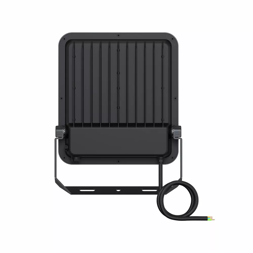 Uniwersalny naświetlacz o strumieniu świetlnym do 20000 lm. Cechy produktu: Wysoka skuteczność świetlna: do 150 lm/W. Stopień ochrony: IP66. Fabrycznie zainstalowany, elastyczny przewód o długości 1 m (H05RN-F), 3 x 1,0 mm². Odbłyśnik, symetryczny rozsył światła z kątem rozsyłu 100° x 100°. Zaciski montażowe z kątem 30° i szerokim obszarem obrotu. Zalety produktu: Zawór odpowietrzający optymalizujący wymianę powietrza, bez uszczerbku dla stopnia ochrony IP. Wysoka wszechstronność dzięki wybieranym stopniom mocy (Multi Lumen) na obudowie. Solidna dławnica kablowa ze zintegrowaną funkcją bariery wodnej. Bezpieczne i bardzo równomierne oświetlenie dzięki wykonanemu ze szkła hartowanego matowemu kloszowi. Jasna, odporna i trwała. Oszczędność energii aż do 90% (w porównaniu z naświetlaczami z lampami halogenowymi). Brak górnego współczynnika rozsyłu światła (ULOR 0%) w przypadku zamontowania pod kątem 0°. Obszary zastosowań: Zamiennik naświetlaczy do żarówek halogenowych. Zastosowania zewnętrzne (IP66). Konstrukcja zgodna z normą EN 60598-2-24 dotyczącą zagrożenia pożarowego, np. poprzez nagromadzenie pyłów. Strefy publiczne. Elewacje budynków. Tereny budowy. Parking. Porady dotyczące bezpieczeństwa: Maks. powierzchnia obciążenia wiatrem 0,085 m².