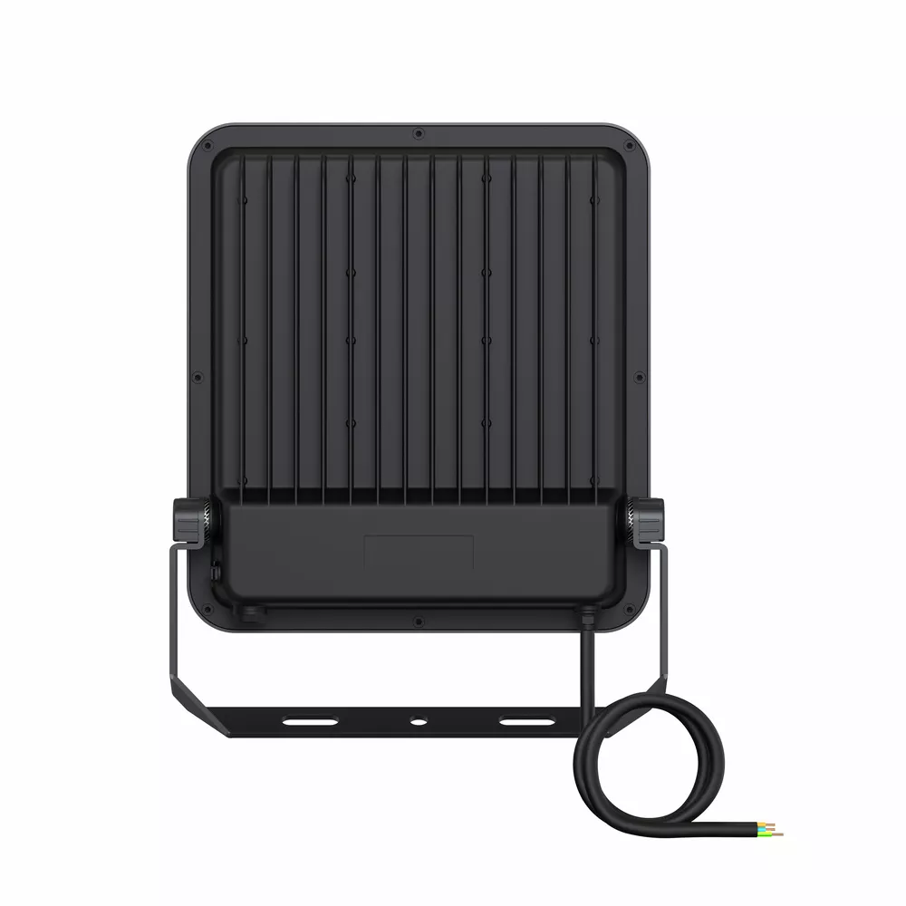 Uniwersalny naświetlacz o strumieniu świetlnym do 25000 lm. Cechy produktu: Wysoka skuteczność świetlna: do 150 lm/W. Stopień ochrony: IP66. Fabrycznie zainstalowany, elastyczny przewód o długości 1 m (H05RN-F), 3 x 1,0 mm². Odbłyśnik, symetryczny rozsył światła z kątem rozsyłu 100° x 100°. Zaciski montażowe z kątem 30° i szerokim obszarem obrotu. Zalety produktu: Zawór odpowietrzający optymalizujący wymianę powietrza, bez uszczerbku dla stopnia ochrony IP. Wysoka wszechstronność dzięki wybieranym stopniom mocy (Multi Lumen) na obudowie. Solidna dławnica kablowa ze zintegrowaną funkcją bariery wodnej. Bezpieczne i bardzo równomierne oświetlenie dzięki wykonanemu ze szkła hartowanego matowemu kloszowi. Jasna, odporna i trwała. Oszczędność energii aż do 90% (w porównaniu z naświetlaczami z lampami halogenowymi). Brak górnego współczynnika rozsyłu światła (ULOR 0%) w przypadku zamontowania pod kątem 0°. Obszary zastosowań: Zamiennik naświetlaczy do żarówek halogenowych. Zastosowania zewnętrzne (IP66). Konstrukcja zgodna z normą EN 60598-2-24 dotyczącą zagrożenia pożarowego, np. poprzez nagromadzenie pyłów. Strefy publiczne. Elewacje budynków. Tereny budowy. Parking. Porady dotyczące bezpieczeństwa: Maks. powierzchnia obciążenia wiatrem 0,105 m².