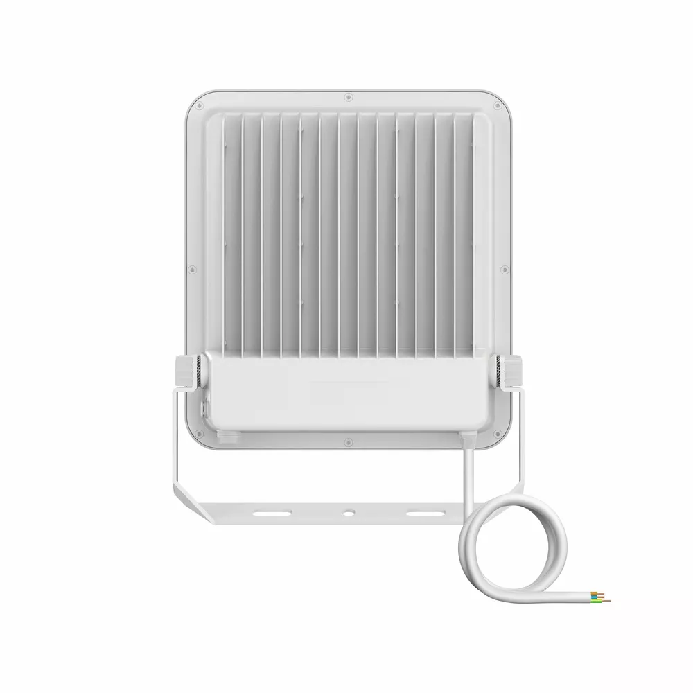 Uniwersalny naświetlacz o strumieniu świetlnym do 25000 lm. Cechy produktu: Wysoka skuteczność świetlna: do 150 lm/W. Stopień ochrony: IP66. Fabrycznie zainstalowany, elastyczny przewód o długości 1 m (H05RN-F), 3 x 1,0 mm². Odbłyśnik, symetryczny rozsył światła z kątem rozsyłu 100° x 100°. Zaciski montażowe z kątem 30° i szerokim obszarem obrotu. Zalety produktu: Zawór odpowietrzający optymalizujący wymianę powietrza, bez uszczerbku dla stopnia ochrony IP. Wysoka wszechstronność dzięki wybieranym stopniom mocy (Multi Lumen) na obudowie. Solidna dławnica kablowa ze zintegrowaną funkcją bariery wodnej. Bezpieczne i bardzo równomierne oświetlenie dzięki wykonanemu ze szkła hartowanego matowemu kloszowi. Jasna, odporna i trwała. Oszczędność energii aż do 90% (w porównaniu z naświetlaczami z lampami halogenowymi). Brak górnego współczynnika rozsyłu światła (ULOR 0%) w przypadku zamontowania pod kątem 0°. Obszary zastosowań: Zamiennik naświetlaczy do żarówek halogenowych. Zastosowania zewnętrzne (IP66). Konstrukcja zgodna z normą EN 60598-2-24 dotyczącą zagrożenia pożarowego, np. poprzez nagromadzenie pyłów. Strefy publiczne. Elewacje budynków. Tereny budowy. Parking. Porady dotyczące bezpieczeństwa: Maks. powierzchnia obciążenia wiatrem 0,105 m².