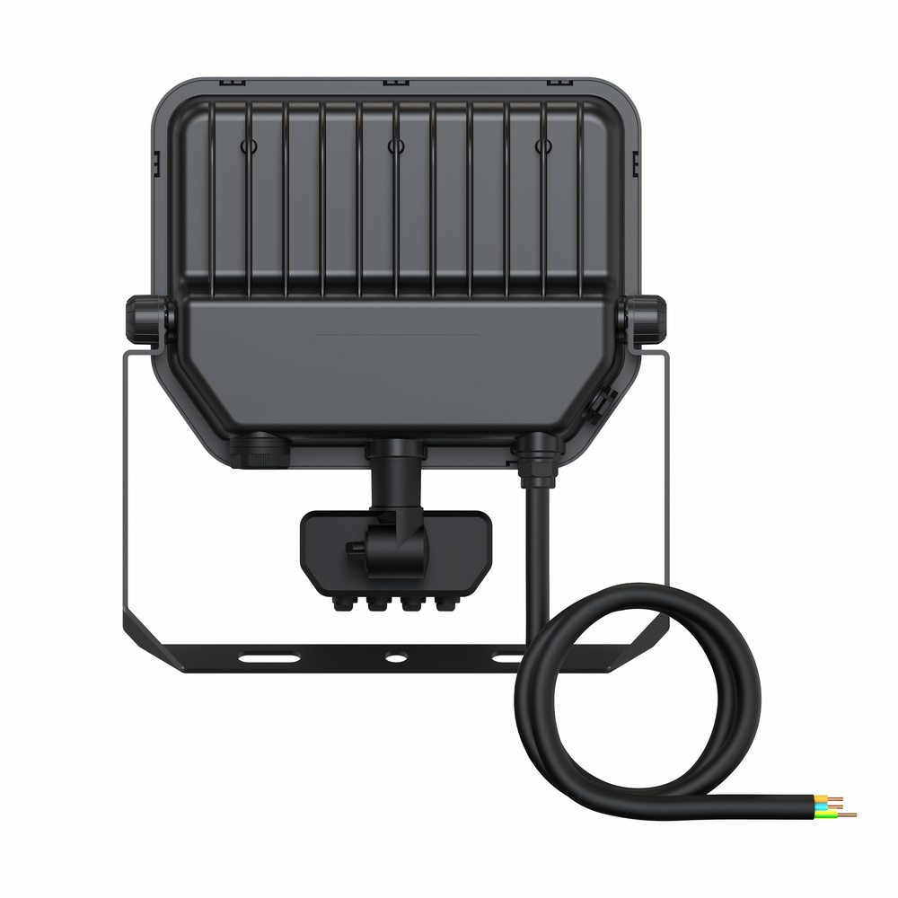 Naświetlacz z elastycznym czujnikiem ruchu i światła dziennego, do 6000 lm. Cechy produktu: Uniwersalny czujnik ruchu i światła. Czujnik z możliwością obrotu w zakresie 350° i pochylenia o 200°. Wysoka skuteczność świetlna: do 145 lm/W. Stopień ochrony: IP65. Fabrycznie zainstalowany, elastyczny przewód o długości 1 m (H05RN-F), 3 x 1,0 mm². Odbłyśnik, symetryczny rozsył światła z kątem rozsyłu 100° x 100°. Zaciski montażowe z kątem 30° i szerokim obszarem obrotu. Zintegrowany zasilacz napięciowy, odpowiedni do 220 - 240 V AC. Zalety produktu: Wymaganie zoptymalizowanego oświetlenia spełnione dzięki uniwersalnemu i programowalnemu czujnikowi. Łatwa regulacja zasięgu czujnika, detekcji światła, czasu podtrzymania i funkcji ściemniania. Możliwość wyłączenia działania czujnika, poprzez wykonanie odpowiedniej sekwencji włączania i wyłączania zasilania oprawy. Zawór odpowietrzający optymalizujący wymianę powietrza, bez uszczerbku dla stopnia ochrony IP. Wysoka wszechstronność dzięki wybieranym stopniom mocy (Multi Lumen) na obudowie. Solidna dławnica kablowa ze zintegrowaną funkcją bariery wodnej. Bezpieczne i bardzo równomierne oświetlenie dzięki wykonanemu ze szkła hartowanego matowemu kloszowi. Jasna, odporna i trwała. Oszczędność energii aż do 90% (w porównaniu z naświetlaczami z lampami halogenowymi). Brak górnego współczynnika rozsyłu światła (ULOR 0%) w przypadku zamontowania pod kątem 0°. Obszary zastosowań: Zamiennik naświetlaczy do żarówek halogenowych. Zastosowanie na zewnątrz (IP65). Konstrukcja zgodna z normą EN 60598-2-24 dotyczącą zagrożenia pożarowego, np. poprzez nagromadzenie pyłów. Strefy publiczne. Elewacje budynków. Tereny budowy. Parking. Ogrody i balkony. Porady dotyczące bezpieczeństwa: Maks. powierzchnia obciążenia wiatrem 0,027 m².
