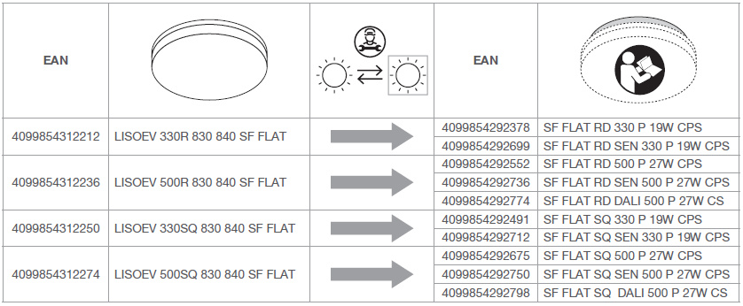 SURFACE FLAT LIGHT SOURCES 500 R 27W 830 840 SF FLAT