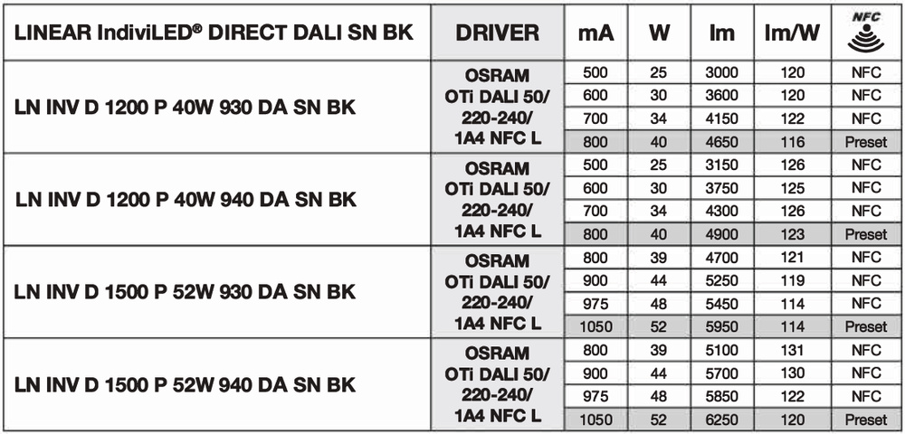 Oprawa LINEAR INDIVILED DIRECT 1200 DALI SENSOR 1200 P 40W 930 DAVR SN BK