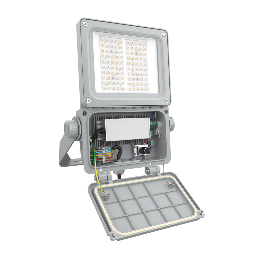 Naświetlacz o szerokim, asymetrycznym rozsyłem światła do oświetlenia zewnętrznego. Cechy produktu: Odporność na korozję C5 w oparciu o 1500-godzinny test mgły solnej. Wysoka skuteczność świetlna: do 161 lm/W. Funkcja Multi Lumen: 4 stopnie mocy do wyboru. Możliwość łączenia szeregowego. Wysokie zabezpieczenie przeciwprzepięciowe: do 10 kV (L/N-PE), 6 kV (L-N). Wysoka trwałość (L70/B50): do 120 000 h (przy 25 °C). Wartość strumienia świetlnego do 70000 lm. Dostępna jest dodatkowa wersja o temperaturze barwowejświatła 2200 K. Zalety produktu: Odporność na korozję C5: testowana w środowiskach o dużym zasoleniu. Oprawa z możliwością wymiany zasilacza LED. Różnorodne zastosowanie dzięki różnym wartościom strumienia świetlnego i kątom rozsyłu światła. 3 wejścia kablowe zapewniające elastyczność użytkowania i łatwe łączenie opraw. Zintegrowany odpowietrznik zapobiegający kondensacji wody wewnątrz oprawy oświetleniowej. Oszczędność energii aż do 91% w porównaniu z naświetlaczami do żarówek halogenowych. Oszczędność energii do 51 % w porównaniu z oprawami oświetleniowymi wykorzystującymi konwencjonalne lampy wyładowcze. Brak górnego współczynnika rozsyłu światła (ULOR 0%) w przypadku zamontowania pod kątem 0°. Inteligentna konstrukcja odpływu wody zapobiegająca gromadzeniu się wody . Prosta regulacja kąta poprzez blokowanie co 2,5°. Wyraźne wskazanie kąta. Otwór zapewniający łatwą instalację. Obszary zastosowań: Obszary przybrzeżne, takie jak porty. Ogólne oświetlenie zewnętrzne. Parking. Nadaje się do obiektów sportowych wewnątrz i na zewnątrz budynków. Oświetlenie architektoniczne. Przemysł. Bezpośredni zamiennik opraw oświetleniowych wykorzystujących lampy wyładowcze. Wyposażenie / Akcesoria: Dostawa bez przewodów. W zestawie drugi dławik kablowy. W zestawie 2 gumowe wkładki do przewodów 6,5 - 7,5 mm.