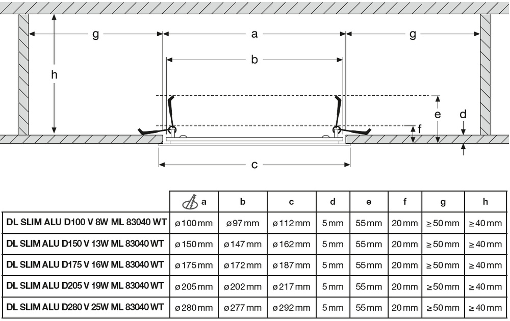 Bardzo wąskie oprawy SLIM DOWNLIGHT z obudową aluminiową i skutecznością świetlną do 100 lm/W. Cechy produktu: Bardzo smukła obudowa aluminiowa o wysokości zaledwie 23 mm. Wysoka skuteczność świetlna: do 100 lm/W. Funkcja Multi Lumen: możliwość wyboru stopni mocy. Funkcja Multi Color: 3000 K i 4000 K. Stopień ochrony: IP44. Oprawa dostępna w 5 wymiarach do różnych wycięć. Trwałość (L70 B50): 50 000 godzin (przy temperaturze Ta = 40 °C). Zalety produktu: Mała głębokość montażu. Wysoka wszechstronność dzięki możliwości wyboru barwy światła (CCT) i stopni mocy (wiele kolorów / wiele lumenów). Bardzo jednorodny rozsył światła. Zewnętrzny sterownik z funkcją okablowania przelotowego 3-biegunowego zapewniający elastyczność i łatwą instalację. Funkcja oświetlenia awaryjnego dzięki układowi konwersji na oświetlenie awaryjne firmy LEDVANCE. Energooszczędność do 60% (w porównaniu z oprawami oświetleniowymi wyposażonymi w świetlówki). Obszary zastosowań: Bezpośredni zamiennik opraw oświetleniowych do świetlówek kompaktowych. Oświetlenie ogólne. Strefy publiczne. Schody. Korytarze. Hole. Sklepy. Wyposażenie / Akcesoria: Dostępne akcesoria do montażu powierzchniowego.