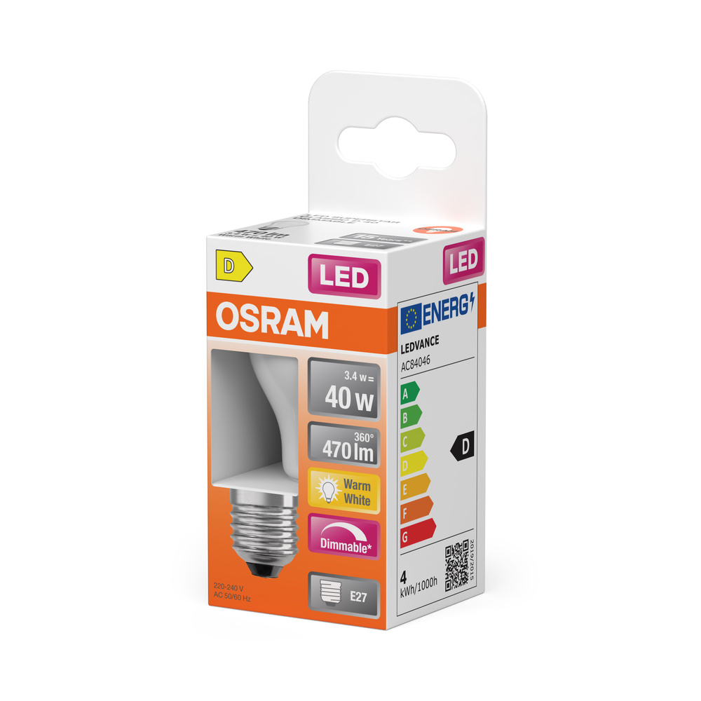 Lampy LED z możliwością regulacji w kształcie tradycyjnej żarówki kulistej. Cechy produktu: Lampy LED dla napięcia sieciowego. Ściemnialne (za pomocą licznych popularnych ściemniaczy, zobacz więcej www.ledvance.pl/dim). Kąt wiązki światła: do 300°. Trwałość do 15 000 h. Lampa wykonana ze szkła. Dobra jakość światła, wskaźnik oddawania barw Ra: ≥ 80; stała chromatyczność. Zalety produktu: Lampy wyposażone w innowacyjną technologię „włókien” LED. Niższe zużycie energii w porównaniu do lamp żarowych lub halogenowych. Natychmiast 100 % światła, bez czasu nagrzewania. Łatwy montaż zamiast zwykłych żarówek. Konstrukcja, wymiary i strumień świetlny porównywalne z tradycyjną żarówką. Obszary zastosowań: Doskonałe rozwiązanie do instalacji dekoracyjnych. Zastosowania domowe. Oświetlenie ogólne. Do użytku na zewnątrz tylko w odpowiednich oprawach zewnętrznych. Porady dotyczące bezpieczeństwa: Nie dotykaj lampy, jeśli jest stłuczona.. Nie wolno używać, jeśli zewnętrzne źródło światła jest uszkodzone..