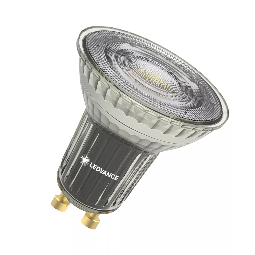 Reflektorowe lampy LED. Cechy produktu: Zamiennik LED dla wysokonapięciowych żarówek halogenowych. Wysoka jednolitość barwy : ≤ 3 SDCM. Ściemnialne. Trzonek: GU10. Lampa wykonana ze szkła. Wysoki wskaźnik oddawania barw (Ra: 97). Trwałość: do 40 000 h. Zalety produktu: Szybka, prosta i bezpieczna wymiana bez zmiany okablowania. Wygląd, wymiary i strumień świetlny porównywalne z tradycyjnymi żarówkami lub żarówkami halogenowymi. Niski koszt konserwacji dzięki długiej trwałości. Brak promieniowania UV i podczerwonego w wiązce światła. Bezstopniowe ściemnianie. Bardzo wysoka kompatybilność ze ściemniaczem, patrz również www.ledvance.com/dim. Natychmiast 100 % światła, bez czasu nagrzewania. Niższe zużycie energii w porównaniu do lamp żarowych lub halogenowych. Obszary zastosowań: Sklepy i pomieszczenia wystawowe. Zastosowania domowe. Zastosowania komercyjne. Oświetlenie akcentujące. Do użytku na zewnątrz tylko w odpowiednich oprawach zewnętrznych. Porady dotyczące bezpieczeństwa: Nie dotykaj lampy, jeśli jest stłuczona.. Nie wolno używać, jeśli zewnętrzne źródło światła jest uszkodzone..