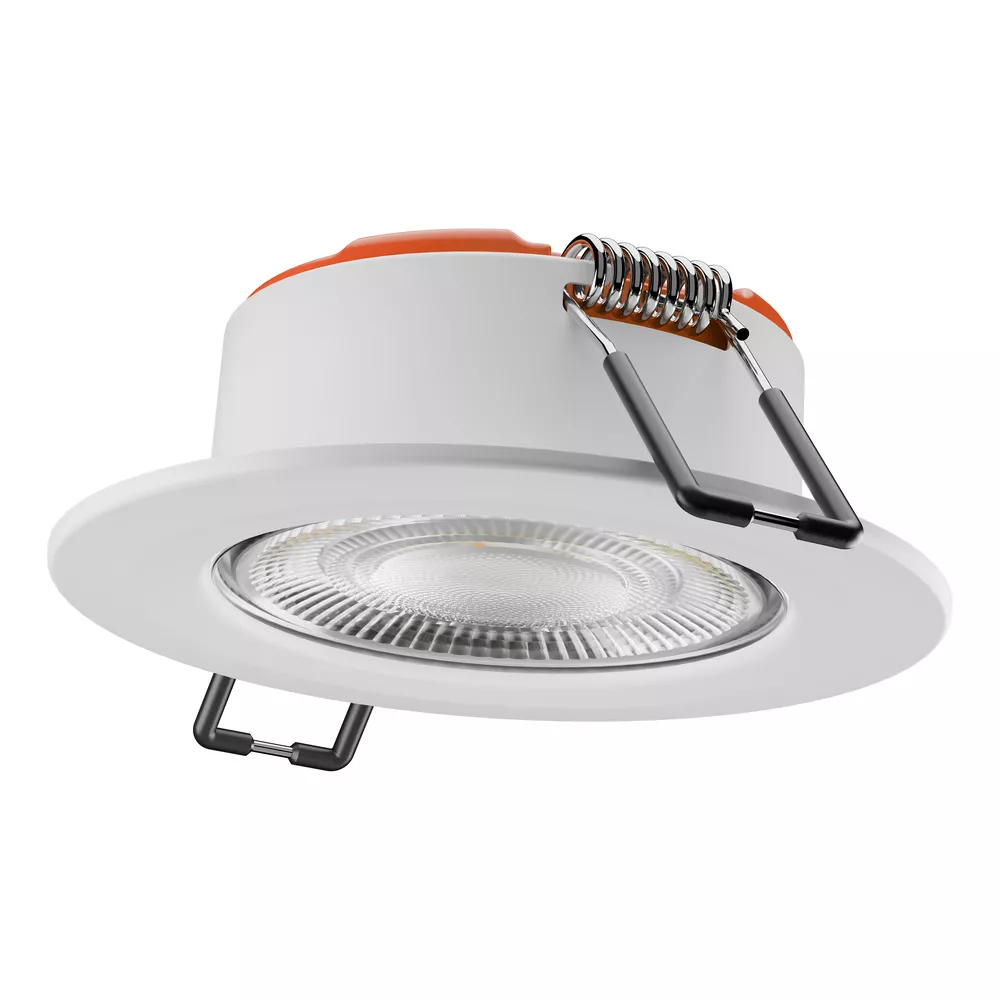 Fire-rated and coverable spotlight with Multi Color- and dimming function, in fix version. Cechy produktu: Regulowana temperatura barwowa światła (Multi Color) : 2700 K, 3000 K, 4000 K. Stopień ochrony: IP65 (od strony pomieszczenia). Materiał obudowy: żelazo. Materiał pierścienia: plastik. Zalety produktu: Regulacja temperatury barwowej za pomocą przełącznika z tyłu reflektora. Możliwość pokrycia większością materiałów izolacyjnych. Ognioodporność: Zaprojektowane i przetestowane w celu spełnienia norm odporności ogniowej (w niektórych sufitach ognioodpornych). Obszary zastosowań: Bezpośredni zamiennik halogenowych opraw reflektorowych. Oświetlenie ogólne. Pokoje hotelowe i korytarze. Bary, restauracje. Pomieszczenia mieszkalne. Porady dotyczące bezpieczeństwa: Wszystkie podłączenia elektryczne muszą być wykonane przez osobę wykwalifikowaną.. Uwaga, ryzyko porażenia prądem.. Produkt w klasie ochrony I. Wszystkie przewodzące prąd, metalowe części obudowy, które mogą absorbować napięcie podczas pracy lub podczas konserwacji w przypadku awarii, muszą być stale PODŁĄCZONE do przewodu uziemiającego.. Aby ograniczyć ryzyko uduszenia, elastyczne przewody PODŁĄCZONE do tej oprawy należy solidnie przymocować do ściany, jeśli znajdują się w zasięgu ręki..