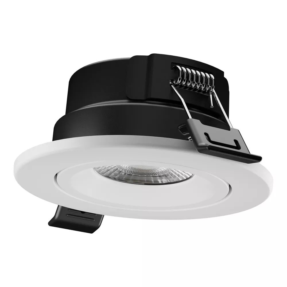 Fire-rated and coverable spotlight with Multi Select- and dimming function, in adjustable version. Cechy produktu: Regulowana temperatura barwowa światła (Multi Color): 2700 K, 3000 K, 4000 K, 6000 K. Dostępna wersja z funkcją Multi Lumen: możliwość wyboru stopnia mocy. Stopień ochrony: IP65 (od strony pomieszczenia). Materiał obudowy: żelazo. Materiał pierścienia: plastik. Zalety produktu: Łatwa regulacja temperatury barwowej światła za pomocą przełącznika znajdującego się z przodu reflektora. Wysoka wszechstronność dzięki możliwości wyboru stopni CCT i mocy (Multi Color / Multi Lumen) w sterowniku. Możliwość pokrycia większością materiałów izolacyjnych. Ognioodporność: Zaprojektowane i przetestowane w celu spełnienia norm odporności ogniowej (w niektórych sufitach ognioodpornych). Obszary zastosowań: Bezpośredni zamiennik halogenowych opraw reflektorowych. Oświetlenie ogólne. Pokoje hotelowe i korytarze. Bary, restauracje. Pomieszczenia mieszkalne. Wyposażenie / Akcesoria: Już wyposażony w biały okrągły pierścień. Dodatkowe pierścienie osłonowe dostępne oddzielnie w kształcie okrągłym i różnych kolorach. Porady dotyczące bezpieczeństwa: Wszystkie podłączenia elektryczne muszą być wykonane przez osobę wykwalifikowaną.. Uwaga, ryzyko porażenia prądem.. Produkt w klasie ochrony I. Wszystkie przewodzące prąd, metalowe części obudowy, które mogą absorbować napięcie podczas pracy lub podczas konserwacji w przypadku awarii, muszą być stale PODŁĄCZONE do przewodu uziemiającego.. Aby ograniczyć ryzyko uduszenia, elastyczne przewody PODŁĄCZONE do tej oprawy należy solidnie przymocować do ściany, jeśli znajdują się w zasięgu ręki..