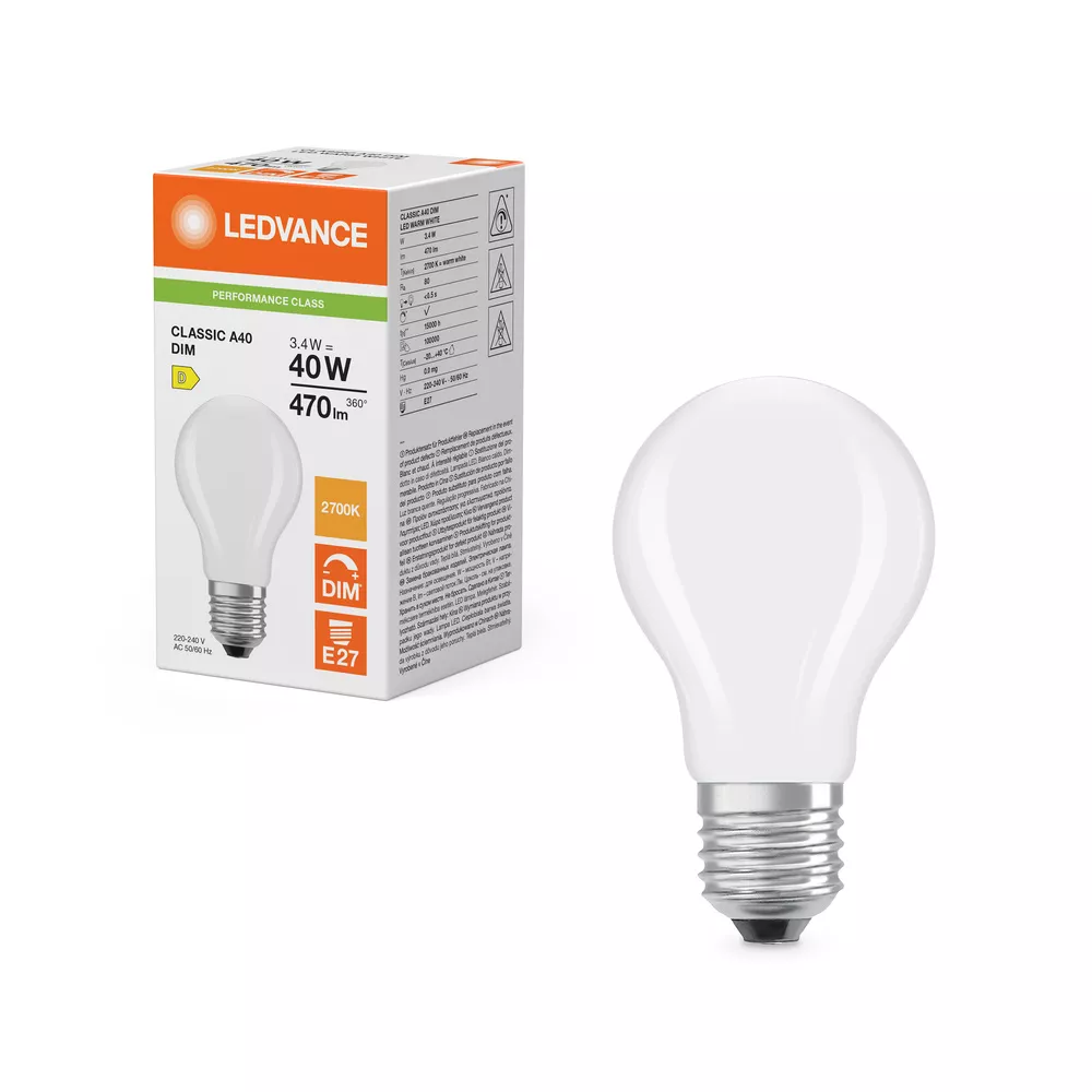 Ściemnialne lampy LED, klasyczny kształt żarówki . Cechy produktu: Profesjonalne lampy dla napięcia sieciowego. Kąt wiązki światła: do 300°. Ściemnialne. Trzonek: E27, B22d. Trwałość do 15 000 h. Lampa wykonana ze szkła. Dobra jakość światła, wskaźnik oddawania barw Ra: ≥ 80; stała chromatyczność. Zalety produktu: Wygląd, wymiary i strumień świetlny porównywalne z tradycyjnymi żarówkami lub żarówkami halogenowymi. Niższe zużycie energii w porównaniu do lamp żarowych lub halogenowych. Odporność na drgania. Brak promieniowania UV i podczerwonego w wiązce światła. Natychmiast 100 % światła, bez czasu nagrzewania. Łatwy montaż zamiast zwykłych żarówek. Obszary zastosowań: Doskonałe rozwiązanie do instalacji dekoracyjnych. Zastosowania domowe. Oświetlenie ogólne. Do użytku na zewnątrz tylko w odpowiednich oprawach zewnętrznych. Porady dotyczące bezpieczeństwa: Nie dotykaj lampy, jeśli jest stłuczona.. Nie wolno używać, jeśli zewnętrzne źródło światła jest uszkodzone..