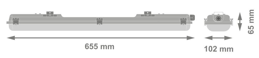 Odporne na wilgoć oprawy oświetleniowe, o klasycznym kształcie. Cechy produktu: Obudowa oprawy, dostępna na 1 lub 2 tuby LED T8. Przeznaczona do zastosowania tub LED T8 EM. Stopień ochrony: IP65. Zalety produktu: Łatwa i szybka instalacja. Wstępnie okablowane, które ułatwia instalację tub LED EM. Instalacja bez użycia narzędzi. Trwała obudowa. Zrównoważone rozwiązanie dzięki wymiennym źródłom światła. 3-letnia gwarancja. Obszary zastosowań: Parkingi, magazyny, obszary produkcyjne. Parkingi i przejścia podziemne. Garaże. Wyposażenie / Akcesoria: Wszystkie wymagane akcesoria w zestawie. Dostępny zestaw oprzewodowania przelotowego.