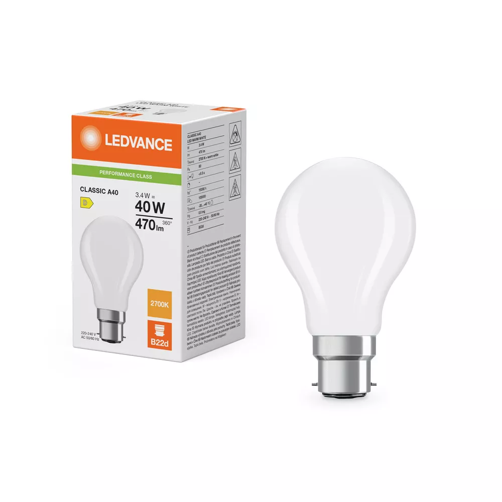 Lampa LED CLASSIC A P 3.4W 827 Frosted B22d