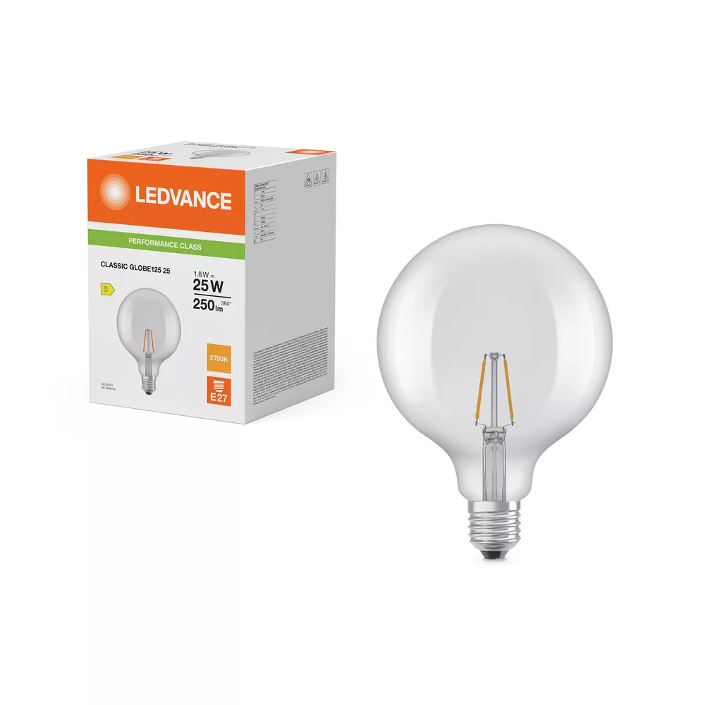 Lampy LED "Classic Ball" w kształcie klasycznej żarówki kulistej. Cechy produktu: Profesjonalne lampy dla napięcia sieciowego. Brak możliwości regulacji strumienia świetlnego. Trwałość do 15 000 h. Kąt wiązki światła: do 360°. Lampa wykonana ze szkła. Dobra jakość światła, wskaźnik oddawania barw Ra: ≥ 80; stała chromatyczność. Zalety produktu: Lampy wyposażone w innowacyjną technologię „włókien” LED. Niższe zużycie energii w porównaniu do lamp żarowych lub halogenowych. Natychmiast 100 % światła, bez czasu nagrzewania. Łatwy montaż zamiast zwykłych żarówek. Obszary zastosowań: Doskonałe rozwiązanie do instalacji dekoracyjnych. Zastosowania domowe. Oświetlenie ogólne. Do użytku na zewnątrz tylko w odpowiednich oprawach zewnętrznych. Porady dotyczące bezpieczeństwa: Nie dotykaj lampy, jeśli jest stłuczona.. Nie wolno używać, jeśli zewnętrzne źródło światła jest uszkodzone..
