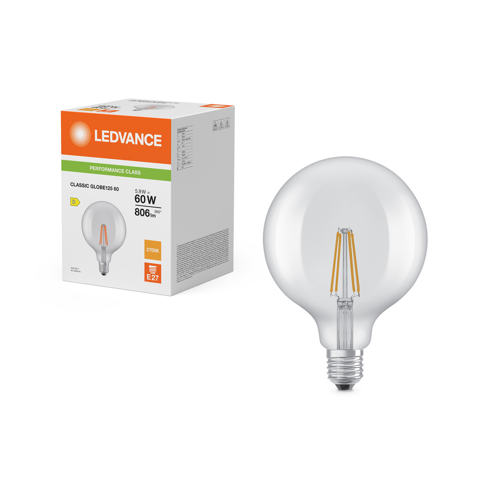 Lampy LED "Classic Ball" w kształcie klasycznej żarówki kulistej. Cechy produktu: Profesjonalne lampy dla napięcia sieciowego. Brak możliwości regulacji strumienia świetlnego. Trwałość do 15 000 h. Kąt wiązki światła: do 360°. Lampa wykonana ze szkła. Dobra jakość światła, wskaźnik oddawania barw Ra: ≥ 80; stała chromatyczność. Zalety produktu: Lampy wyposażone w innowacyjną technologię „włókien” LED. Niższe zużycie energii w porównaniu do lamp żarowych lub halogenowych. Natychmiast 100 % światła, bez czasu nagrzewania. Łatwy montaż zamiast zwykłych żarówek. Obszary zastosowań: Doskonałe rozwiązanie do instalacji dekoracyjnych. Zastosowania domowe. Oświetlenie ogólne. Do użytku na zewnątrz tylko w odpowiednich oprawach zewnętrznych. Porady dotyczące bezpieczeństwa: Nie dotykaj lampy, jeśli jest stłuczona.. Nie wolno używać, jeśli zewnętrzne źródło światła jest uszkodzone..