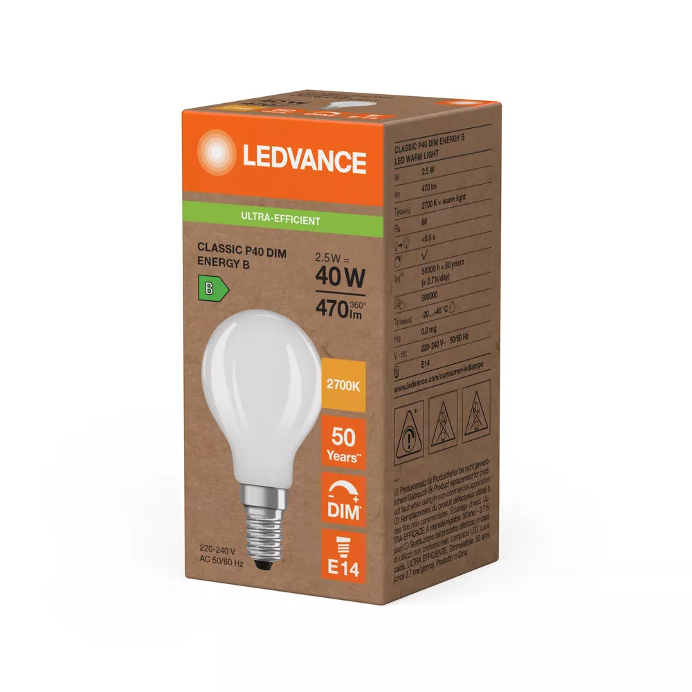 Lampa LED CLASSIC P ENERGY EFFICIENCY B DIM S 2.5W 827 Frosted E14