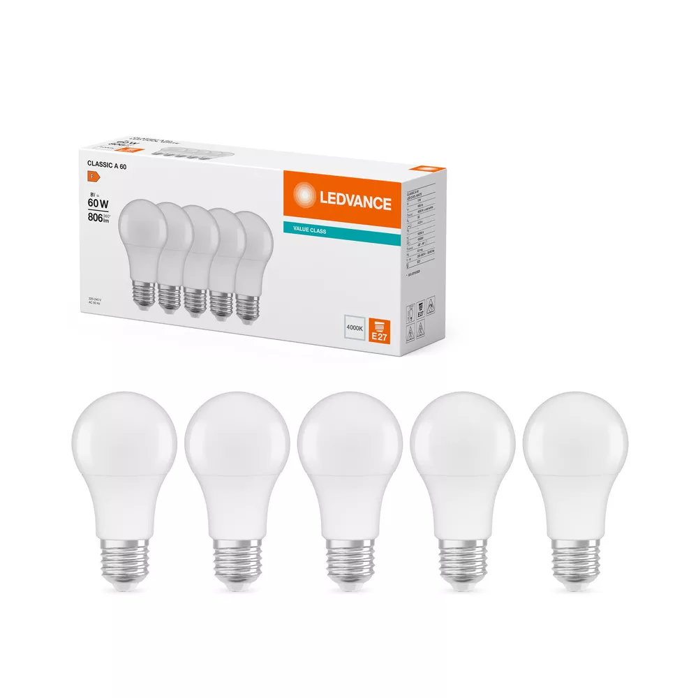 Lampa LED CLASSIC A V 8W 830 Frosted E27 5 Pack