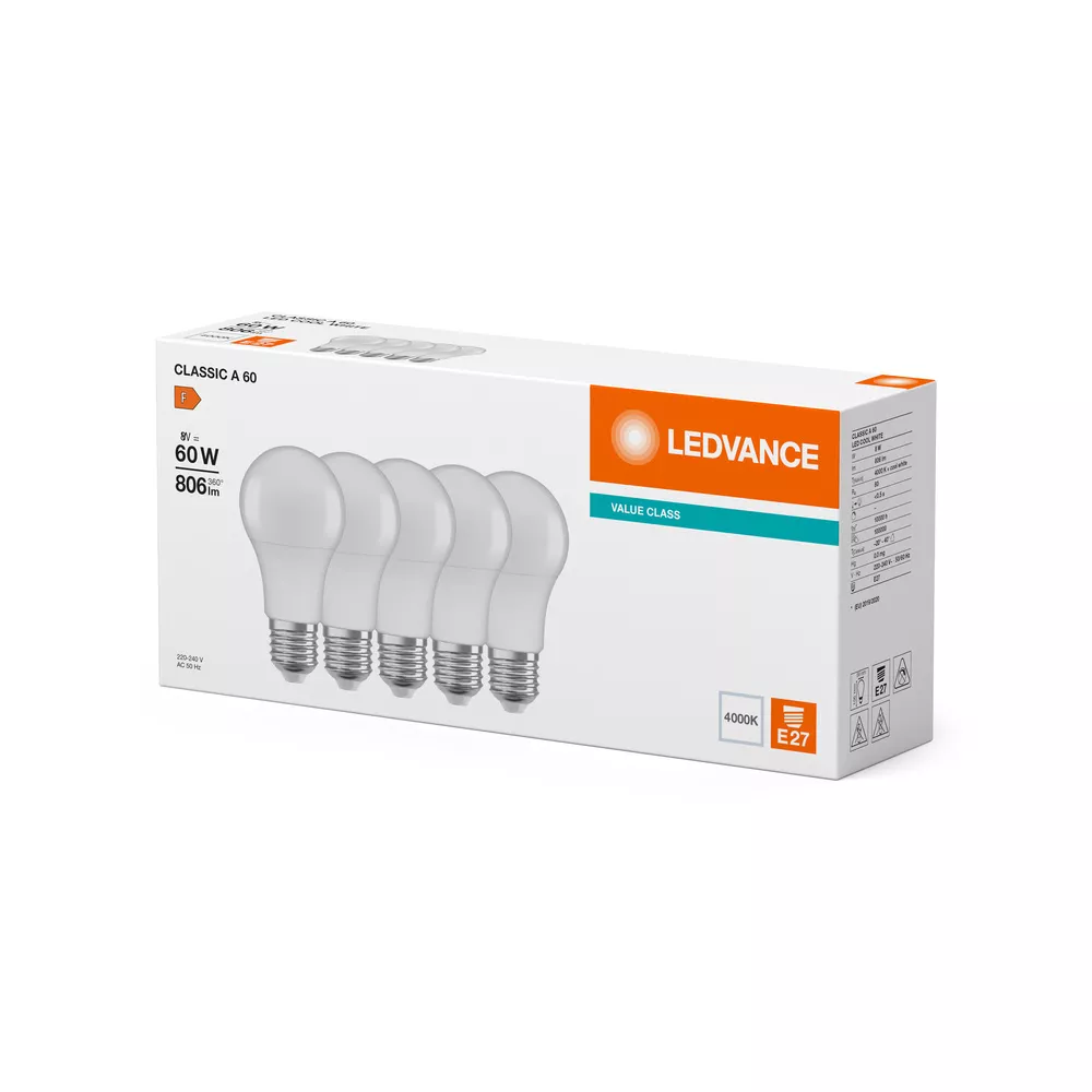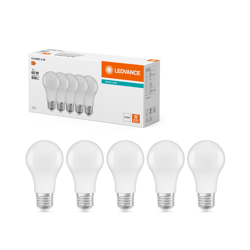 Lampa LED CLASSIC A V 8W 840 Frosted E27 5 Pack