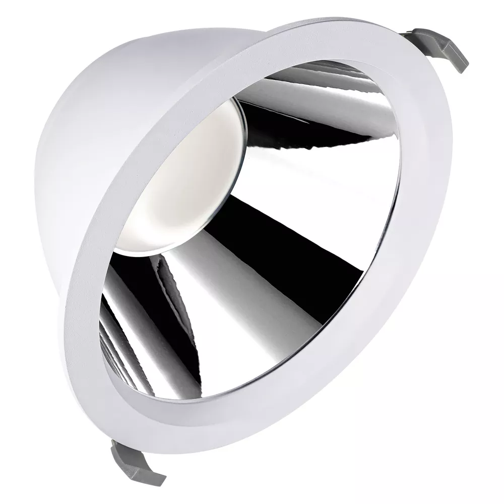 Downlight luminaires with aluminum housing, high luminous efficacy and low glare. Cechy produktu: Oprawy aluminiowe z 4 różnymi wycięciami i odbłyśnikiem lustrzanym UGR ≤ 19. Bardzo jednorodny rozsył światła. Zewnętrzny zasilacz z funkcją Multi Lumen do 5000 lm. Funkcja Multi Color. Jednorodność barwy światła ≤ 3 SDCM. Trwałość (L80/B10): 70 000 h (przy 25°C). Zalety produktu: Równomierny rozsył światła i zmniejszone olśnienie UGR ≤ 19. Oszczędność energii dzięki wysokiej skuteczności świetlnej systemu: do 120 lm/W. Wysoka wszechstronność dzięki funkcjom Multi Select. Wysoki wskaźnik oddawania barw Ra > 90 . Zewnętrzny zasilacz zwiększa uniwersalność i zapewnia łatwą instalację. Możliwość okablowania przelotowego za pomocą dodatkowego akcesorium w postaci CONNECTOR BOX-u. Stopień ochrony: IP44. Łatwa instalacja przy pomocy szybkozłącza. Dostępne są także inne warianty ze sterownikiem DALI-2, sterownikiem Zigbee lub EMERGENCY CONVERSION KIT-em.. Obszary zastosowań: Bezpośredni zamiennik opraw świetlówkowych. Biura, sale konferencyjne. Recepcje, hole, korytarze, windy. Wyposażenie / Akcesoria: Dostępne opcje SURFACE MOUNT FRAME do montażu powierzchniowego. Linka zabezpieczająca oprawę oświetleniową w zestawie. Stateczniki zewnętrzne w zestawie. Nadaje się do użytku z Emergency Conversion Box. Porady dotyczące bezpieczeństwa: Wszystkie podłączenia elektryczne muszą być wykonane przez osobę wykwalifikowaną.. Uwaga, ryzyko porażenia prądem.. Oprawy nie nadają się do pokrywania materiałem termoizolacyjnym..