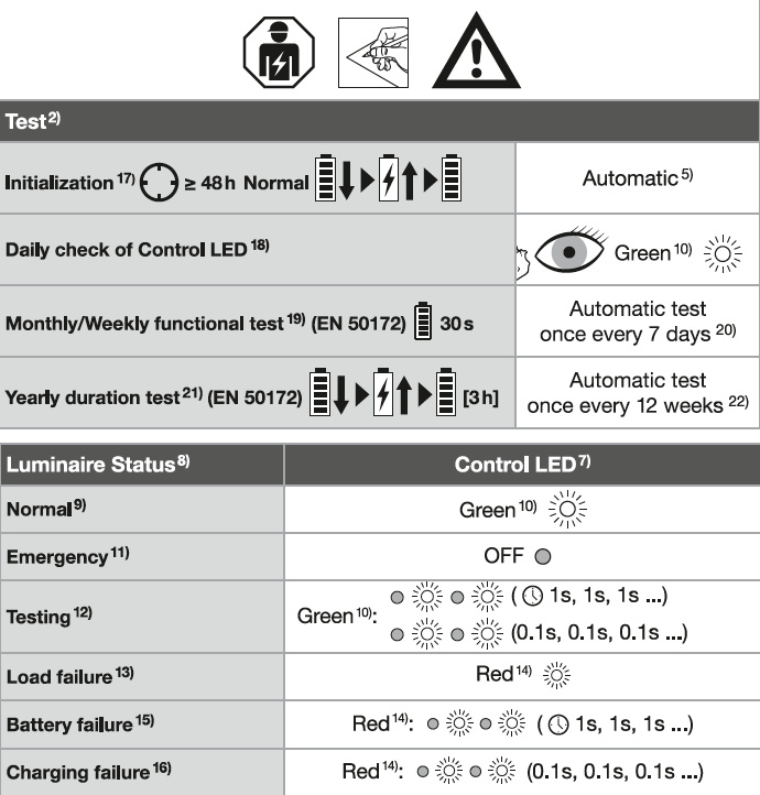 Tubular damp-proof luminaires with extra high IP, IK protection and integrated emergency lighting function. Cechy produktu: Oprawa oświetleniowa przystosowana do oświetlenia normalnego i awaryjnego. Nadaje się do awaryjnych instalacji zasilanych z centralnej baterii zgodnie z EN 60598-2-22. Niezależne oprawy oświetleniowe. Funkcja oświetlenia awaryjnego: czas rozładowania baterii wynosi 3 godziny. Funkcja testowania oświetlenie awaryjnego: automatyczne testowanie (AT). Technologia baterii: LiFePO4. Stopień ochrony: IP66, IP69 (80 °C). Odporność na uderzenia: IK10. Odporna na amon. Klosz z PMMA odporny na działanie promieni UV. Zgodny ze źródłami światła LED Zhaga Book 7. Zalety produktu: Bezproblemowa integracja opraw oświetleniowych z funkcją oświetlenia awaryjnego w oświetleniu ogólnym. Łatwa instalacja elektryczna dzięki wyposażeniu w zasilacz oraz baterię do zasilania oświetlenia awaryjnego. Proste testowanie opraw oświetleniowych z funkcją oświetlenia awaryjnego dzięki zintegrowanej funkcji automatycznego testowania. Wygodna wizualizacja wyników automatycznego testowania za pomocą dostarczonego sterowania LED. Działanie zintegrowanej funkcji automatycznego testowania dzięki baterii LiFePO4 o dużej trwałości i 3-godzinnym czasem rozładowania. Równomierny rozsył strumienia świetlnego podczas normalnej pracy. Wszechstronne zastosowanie dzięki odporności na wiele substancji chemicznych i promieniowanie UV. Obszary zastosowań: Oświetlenie awaryjne dróg ewakuacyjnych. Oświetlenie zapobiegające powstawaniu paniki. Budynki wymagające 3-godzinnej pracy oświetlenia awaryjnego. Przemysł spożywczy. Otwarte parkingi i przejścia podziemne. Myjnie samochodowe. Zastosowania zewnętrzne. Idealne do pomieszczeń przemysłowych i magazynowych. Wyposażenie / Akcesoria: W zestawie zaciski ze stali nierdzewnej i dławik kablowy M25. Porady dotyczące bezpieczeństwa: Wszystkie podłączenia elektryczne muszą być wykonane przez osobę wykwalifikowaną.. Uwaga, ryzyko porażenia prądem.. Produkt w klasie ochrony I. Wszystkie przewodzące prąd, metalowe części obudowy, które mogą absorbować napięcie podczas pracy lub podczas konserwacji w przypadku awarii, muszą być stale PODŁĄCZONE do przewodu uziemiającego..