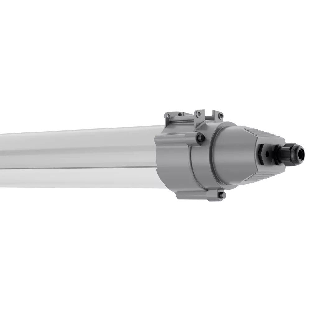 Tubular damp-proof luminaires with extra high IP, IK protection, high frequency sensor and integrated emergency lighting function. Cechy produktu: Czujnik o wysokiej częstotliwości do wykrywania światła i ruchu. Oprawa oświetleniowa przystosowana do oświetlenia normalnego i awaryjnego. Nadaje się do awaryjnych instalacji zasilanych z centralnej baterii zgodnie z EN 60598-2-22. Niezależne oprawy oświetleniowe. Funkcja oświetlenia awaryjnego: czas rozładowania baterii wynosi 3 godziny. Funkcja testowania oświetlenie awaryjnego: automatyczne testowanie (AT). Technologia baterii: LiFePO4. Stopień ochrony: IP66, IP69 (80 °C). Odporność na uderzenia: IK10. Odporna na amon. Klosz z PMMA odporny na działanie promieni UV. Zgodny ze źródłami światła LED Zhaga Book 7. Zalety produktu: Wiele regulacji zasięgu czujnika światła i czasu jego działania. Bezproblemowa integracja opraw oświetleniowych z funkcją oświetlenia awaryjnego w oświetleniu ogólnym. Łatwa instalacja elektryczna dzięki wyposażeniu w zasilacz oraz baterię do zasilania oświetlenia awaryjnego. Proste testowanie opraw oświetleniowych z funkcją oświetlenia awaryjnego dzięki zintegrowanej funkcji automatycznego testowania. Wygodna wizualizacja wyników automatycznego testowania za pomocą dostarczonego sterowania LED. Działanie zintegrowanej funkcji automatycznego testowania dzięki baterii LiFePO4 o dużej trwałości i 3-godzinnym czasem rozładowania. Równomierny rozsył strumienia świetlnego podczas normalnej pracy. Wszechstronne zastosowanie dzięki odporności na wiele substancji chemicznych i promieniowanie UV. Obszary zastosowań: Oświetlenie awaryjne dróg ewakuacyjnych. Oświetlenie zapobiegające powstawaniu paniki. Budynki wymagające 3-godzinnej pracy oświetlenia awaryjnego. Przemysł spożywczy. Otwarte parkingi i przejścia podziemne. Myjnie samochodowe. Zastosowania zewnętrzne. Idealne do pomieszczeń przemysłowych i magazynowych. Wyposażenie / Akcesoria: W zestawie zaciski ze stali nierdzewnej i dławik kablowy M25. Porady dotyczące bezpieczeństwa: Wszystkie podłączenia elektryczne muszą być wykonane przez osobę wykwalifikowaną.. Uwaga, ryzyko porażenia prądem.. Produkt w klasie ochrony I. Wszystkie przewodzące prąd, metalowe części obudowy, które mogą absorbować napięcie podczas pracy lub podczas konserwacji w przypadku awarii, muszą być stale PODŁĄCZONE do przewodu uziemiającego..