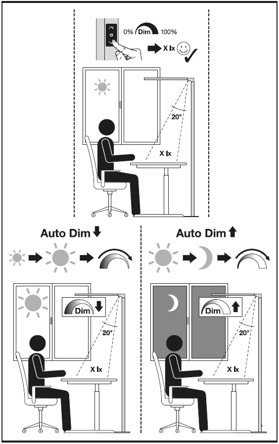 Minimalistyczna oprawa stojąca z wbudowanym czujnikiem. Cechy produktu: Wysoki strumień świetlny, łącznie do 12 600 lm (9000 lm pośrednie i 3600 lm bezpośrednie). Wysoka skuteczność świetlna: do 144 lm/W. Klosz pryzmatyczny (bezpośredni) i przezroczysty (pośredni) zapewnia redukcję olśnienia na poziomie UGR <19. Dostępne w kolorze białym (np. RAL9003), szarym (np. RAL9006) i czarnym (np. RAL9005). Trwałość (L80/B10): do 75 000 h (przy 25 °C). Oprawa aluminiowa malowana proszkowo. Temperatura barwowa światła 4000 K z SDCM <3 i Ra (CRI) 80. Zintegrowane gniazdo IEC zapewniające elastyczne połączenie. Dostępne wersje z wtyczką EU lub szwajcarską (CH). Zalety produktu: Możliwość oddzielnego sterowania oświetleniem bezpośrednim i pośrednim. Sterowanie zależne od światła dziennego i ruchu dzięki zintegrowanemu czujnikowi. Możliwość ręcznego ściemniania i ustawienia żądanego poziomu oświetlenia za pomocą dotykowego PANELU INTEGRATED. Elastyczne pozycjonowanie oprawy dzięki przewodowi zasilającemu o długości 2500 mm. Obszary zastosowań: Do stosowania przy biurkach pojedynczych lub podwójnych. Biura przemysłowe. Biuro typu open space. Biura w domu. Wyposażenie / Akcesoria: W zestawie akcesoria do montażu oprawy oświetleniowej. Porady dotyczące bezpieczeństwa: Wszystkie podłączenia elektryczne muszą być wykonane przez osobę wykwalifikowaną.. Produkt w klasie ochrony I. Wszystkie przewodzące prąd, metalowe części obudowy, które mogą absorbować napięcie podczas pracy lub podczas konserwacji w przypadku awarii, muszą być stale PODŁĄCZONE do przewodu uziemiającego.. Aby ograniczyć ryzyko uduszenia, elastyczne przewody PODŁĄCZONE do tej oprawy należy solidnie przymocować do ściany, jeśli znajdują się w zasięgu ręki..