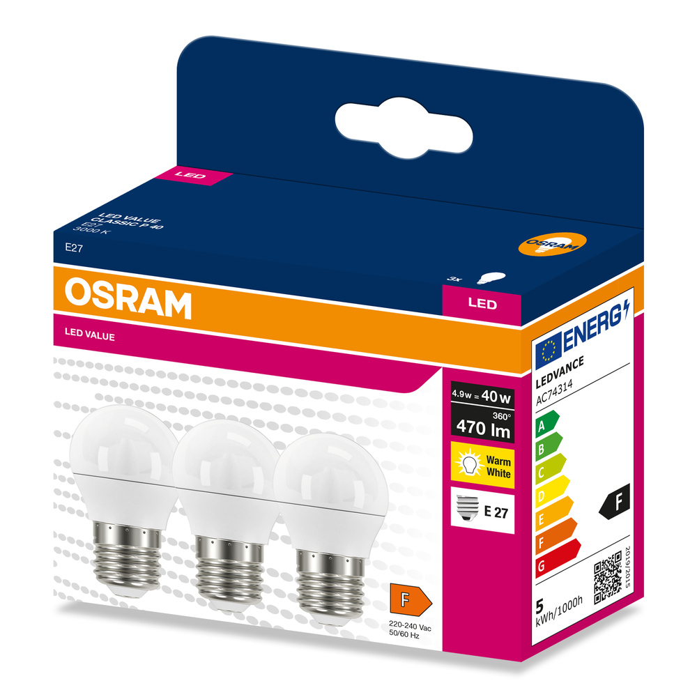 Lampa LED VALUE CLASSIC P 40 4.9W/3000K E27