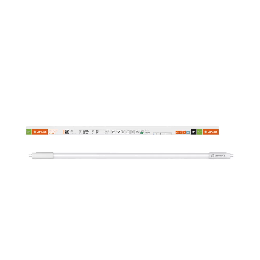 Tuby LED do zasilania przez elektroniczne stateczniki (ECG), zabezpieczone przed odłamkami szkła . Cechy produktu: Zamiennik świetlówek liniowych T5 w instalacjach ze statecznikami elektronicznymi. Rurka lampy wykonana ze szkła z zabezpieczeniem przed odłamkami z myślą o zastosowaniach w przemyśle spożywczym. Wysoka jedorodność barw: ≤ 5 sdcm. Trwałość do 60 000 godzin. Niskie tętnienie światła zgodnie z UE 2019/2020 (SVM ≤ 0,4 / PstLM ≤ 1). Stopień ochrony: IP20. Kompatybilność z popularnymi statecznikami elektronicznymi (patrz również compatibility list). Zalety produktu: Lampa nie ugina się dzięki rurce wykonanej ze szkła. Szybka, prosta i bezpieczna wymiana bez zmiany okablowania. Wysokie natężenie oświetlenia dla zaawansowanych zadań oświetleniowych. Nadaje się również do pracy w niskich temperaturach. Obszary zastosowań: Oświetlenie ogólne – dla temperatur otoczenia w zakresie -20…+45 °C. Biura, budynki publiczne. Supermarkety i domy towarowe. Przemysł. Porady prawne: W przypadku zastąpienia świetlówki T5 całkowita efektywność energetyczna i rozsył światła zależą od projektu systemu oświetleniowego.. Porady dotyczące bezpieczeństwa: Możliwa praca w zastosowaniach zewnętrznych w odpowiednich oprawach odpornych na wilgoć zgodnie z kartą katalogową i instrukcją instalacji.. Zakres temperatur pracy tub LED jest ograniczony. W przypadku wątpliwości, należy zmierzyć temperaturę w punkcie Tc oznaczonym na lampie w celu weryfikacji.. Wszystkie podłączenia elektryczne muszą być wykonane przez osobę wykwalifikowaną.. Oprawa nie nadaje się do użytku awaryjnego..