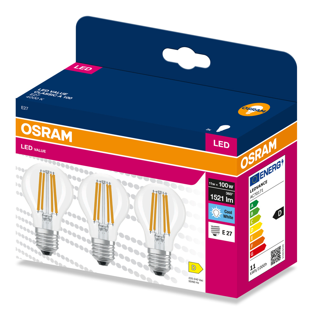 Lampy LED, klasyczny kształt żarówki. Cechy produktu: LED zamienniki tradycyjnych żarówek. Kąt wiązki światła: do 300°. Trwałość do 15 000 h. Dobre oddawanie barw (Ra ≥ 80) i stabilność braw przez cały czas eksploatacji lampy. Brak możliwości regulacji strumienia świetlnego. Zalety produktu: Wygląd, wymiary i strumień świetlny porównywalne z tradycyjnymi żarówkami lub żarówkami halogenowymi. Niższe zużycie energii w porównaniu do lamp żarowych lub halogenowych. Brak promieniowania UV i podczerwonego w wiązce światła. Łatwy montaż zamiast zwykłych żarówek. Natychmiast 100 % światła, bez czasu nagrzewania. Obszary zastosowań: Doskonałe rozwiązanie do instalacji dekoracyjnych. Zastosowania domowe. Oświetlenie ogólne. Do użytku na zewnątrz tylko w odpowiednich oprawach zewnętrznych. Porady dotyczące bezpieczeństwa: Nie dotykaj lampy, jeśli jest stłuczona.. Nie wolno używać, jeśli zewnętrzne źródło światła jest uszkodzone..