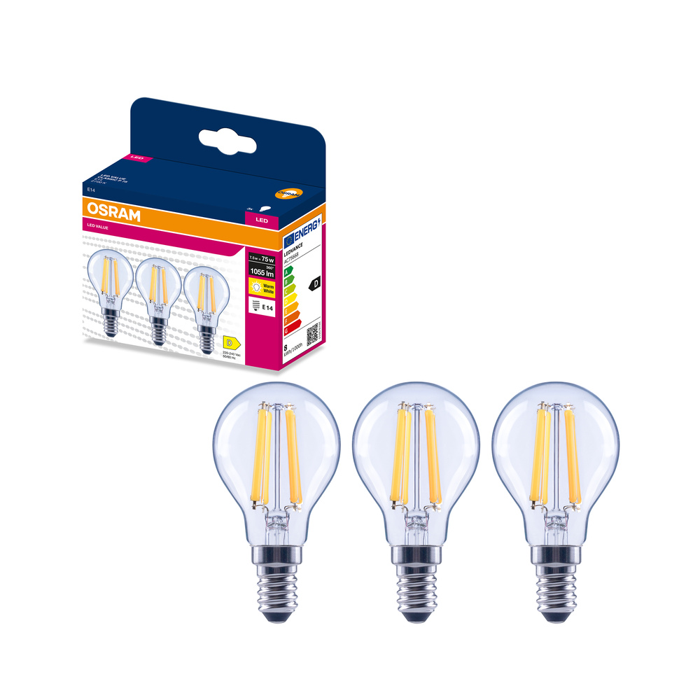 Lampy LED w kształcie klasycznej żarówki kulistej. Cechy produktu: LED zamienniki tradycyjnych żarówek. Kąt wiązki światła: do 300°. Trwałość do 15 000 h. Dobre oddawanie barw (Ra ≥ 80) i stabilność braw przez cały czas eksploatacji lampy. Brak możliwości regulacji strumienia świetlnego. Zalety produktu: Wygląd, wymiary i strumień świetlny porównywalne z tradycyjnymi żarówkami lub żarówkami halogenowymi. Niższe zużycie energii w porównaniu do lamp żarowych lub halogenowych. Brak promieniowania UV i podczerwonego w wiązce światła. Łatwy montaż zamiast zwykłych żarówek. Natychmiast 100 % światła, bez czasu nagrzewania. Obszary zastosowań: Doskonałe rozwiązanie do instalacji dekoracyjnych. Zastosowania domowe. Oświetlenie ogólne. Do użytku na zewnątrz tylko w odpowiednich oprawach zewnętrznych. Porady dotyczące bezpieczeństwa: Nie dotykaj lampy, jeśli jest stłuczona.. Nie wolno używać, jeśli zewnętrzne źródło światła jest uszkodzone..