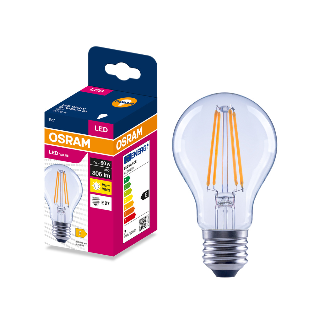 Lampy LED, klasyczny kształt żarówki. Cechy produktu: LED zamienniki tradycyjnych żarówek. Kąt wiązki światła: do 300°. Trwałość do 15 000 h. Dobre oddawanie barw (Ra ≥ 80) i stabilność braw przez cały czas eksploatacji lampy. Brak możliwości regulacji strumienia świetlnego. Zalety produktu: Wygląd, wymiary i strumień świetlny porównywalne z tradycyjnymi żarówkami lub żarówkami halogenowymi. Niższe zużycie energii w porównaniu do lamp żarowych lub halogenowych. Brak promieniowania UV i podczerwonego w wiązce światła. Łatwy montaż zamiast zwykłych żarówek. Natychmiast 100 % światła, bez czasu nagrzewania. Obszary zastosowań: Doskonałe rozwiązanie do instalacji dekoracyjnych. Zastosowania domowe. Oświetlenie ogólne. Do użytku na zewnątrz tylko w odpowiednich oprawach zewnętrznych. Porady dotyczące bezpieczeństwa: Nie dotykaj lampy, jeśli jest stłuczona.. Nie wolno używać, jeśli zewnętrzne źródło światła jest uszkodzone..