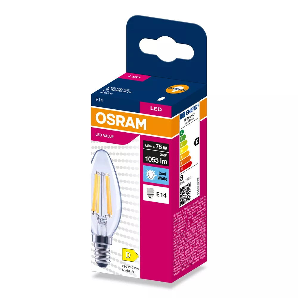 Lampki LED , klasyczny kształt świecy. Cechy produktu: LED zamienniki tradycyjnych żarówek. Kąt wiązki światła: do 300°. Trwałość do 15 000 h. Dobre oddawanie barw (Ra ≥ 80) i stabilność braw przez cały czas eksploatacji lampy. Brak możliwości regulacji strumienia świetlnego. Zalety produktu: Wygląd, wymiary i strumień świetlny porównywalne z tradycyjnymi żarówkami lub żarówkami halogenowymi. Niższe zużycie energii w porównaniu do lamp żarowych lub halogenowych. Brak promieniowania UV i podczerwonego w wiązce światła. Łatwy montaż zamiast zwykłych żarówek. Natychmiast 100 % światła, bez czasu nagrzewania. Obszary zastosowań: Doskonałe rozwiązanie do instalacji dekoracyjnych. Zastosowania domowe. Oświetlenie ogólne. Do użytku na zewnątrz tylko w odpowiednich oprawach zewnętrznych. Porady dotyczące bezpieczeństwa: Nie dotykaj lampy, jeśli jest stłuczona.. Nie wolno używać, jeśli zewnętrzne źródło światła jest uszkodzone..