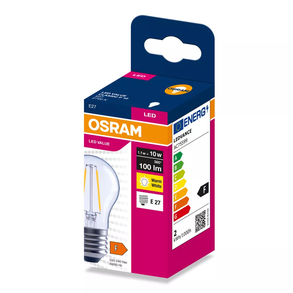 Lampa LED FILAMENT CLASSIC P VALUE 1.1W 2700K Clear E27