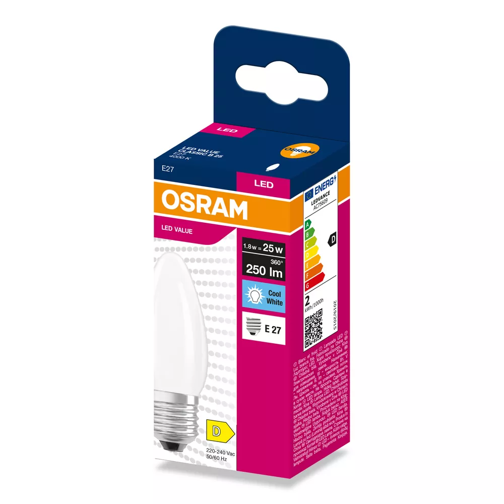 Lampki LED , klasyczny kształt świecy. Cechy produktu: LED zamienniki tradycyjnych żarówek. Kąt wiązki światła: do 300°. Trwałość do 15 000 h. Dobre oddawanie barw (Ra ≥ 80) i stabilność braw przez cały czas eksploatacji lampy. Brak możliwości regulacji strumienia świetlnego. Zalety produktu: Wygląd, wymiary i strumień świetlny porównywalne z tradycyjnymi żarówkami lub żarówkami halogenowymi. Niższe zużycie energii w porównaniu do lamp żarowych lub halogenowych. Brak promieniowania UV i podczerwonego w wiązce światła. Łatwy montaż zamiast zwykłych żarówek. Natychmiast 100 % światła, bez czasu nagrzewania. Obszary zastosowań: Doskonałe rozwiązanie do instalacji dekoracyjnych. Zastosowania domowe. Oświetlenie ogólne. Do użytku na zewnątrz tylko w odpowiednich oprawach zewnętrznych. Porady dotyczące bezpieczeństwa: Nie dotykaj lampy, jeśli jest stłuczona.. Nie wolno używać, jeśli zewnętrzne źródło światła jest uszkodzone..