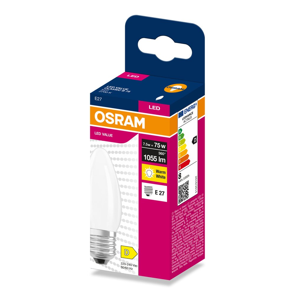 Lampki LED , klasyczny kształt świecy. Cechy produktu: LED zamienniki tradycyjnych żarówek. Kąt wiązki światła: do 300°. Trwałość do 15 000 h. Dobre oddawanie barw (Ra ≥ 80) i stabilność braw przez cały czas eksploatacji lampy. Brak możliwości regulacji strumienia świetlnego. Zalety produktu: Wygląd, wymiary i strumień świetlny porównywalne z tradycyjnymi żarówkami lub żarówkami halogenowymi. Niższe zużycie energii w porównaniu do lamp żarowych lub halogenowych. Brak promieniowania UV i podczerwonego w wiązce światła. Łatwy montaż zamiast zwykłych żarówek. Natychmiast 100 % światła, bez czasu nagrzewania. Obszary zastosowań: Doskonałe rozwiązanie do instalacji dekoracyjnych. Zastosowania domowe. Oświetlenie ogólne. Do użytku na zewnątrz tylko w odpowiednich oprawach zewnętrznych. Porady dotyczące bezpieczeństwa: Nie dotykaj lampy, jeśli jest stłuczona.. Nie wolno używać, jeśli zewnętrzne źródło światła jest uszkodzone..