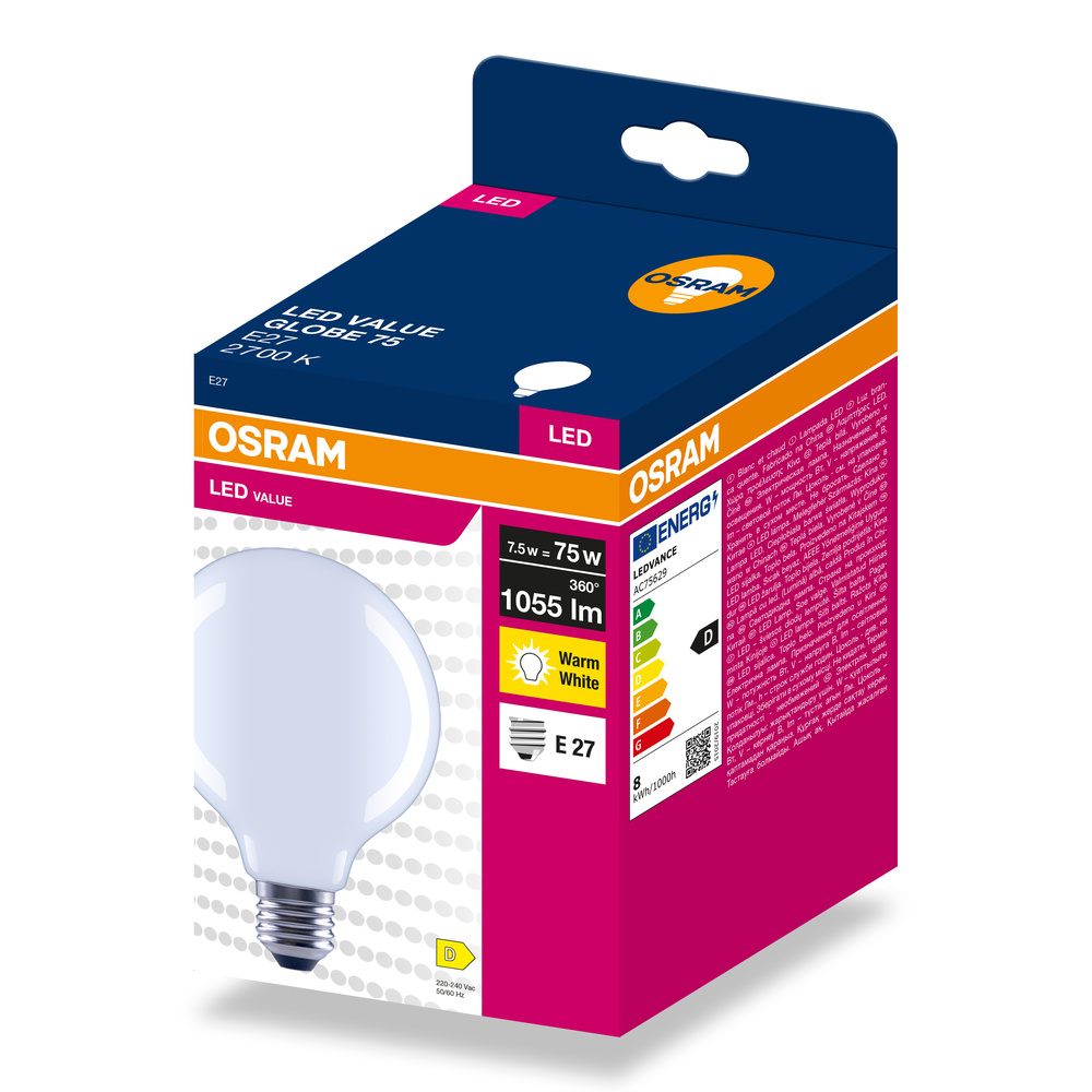 Lampa LED FILAMENT GLOBE VALUE 7.5W 2700K Frosted E27
