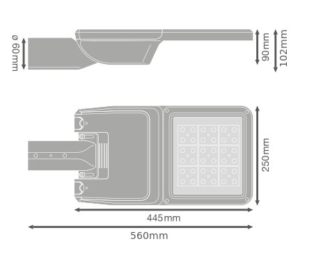 Rozsył strumienia świetlnego przystosowany do oświetlenia drogowego. Cechy produktu: Temperatura barwowa: 2200 K, 2700 K, 3000 K, 4000 K, 5700 K. Rozsył światła zoptymalizowany dla ulic o szerokości zbliżonej do wysokości słupa. Bardzo długa trwałość (L90/B10): do 100 000 godzin (przy 25 °C). W zestawie czop na słupy o średnicy 48-60 mm. Oprawa przystosowana do montażu bocznego lub na szczycie słupa. Regulacja kąta nachylenia +/- 15° bez otwierania obudowy. Wysoka skuteczność świetlna: do 180 lm/W. Zakres temperatury pracy: -40...50 °C. Wysoka ochrona przed przepięciami: do 10 kV (L/N-GND). Klasa ochronności: I i II. Certyfikat: ENEC+, ENEC, ZD4i RoHS, SASO. Stopień ochrony: IP66. Zalety produktu: Trwała konstrukcja i komponenty najwyższej jakości zapewniają długą trwałość. Szybkie i łatwe okablowanie oprawy dzięki otwieraniu obudowy bez użycia narzędzi i zaciskom przyciskowym. Wysoka jednorodność światła. Dostępne 5 barw światła, doskonale nadające się do oświetlenia bardzo zróżnicowanego otoczenia. Brak górnego współczynnika rozsyłu światła (ULOR 0%) w przypadku zamontowania pod kątem 0°. Automatyczne wyłączanie zasilania podczas otwierania obudowy. 5-letnia gwarancja. Obszary zastosowań: Oświetlenie drogowe, oświetlenie miejskie. Zastosowania zewnętrzne. Miejskie ulice, drogi przemysłowe, parkingi. Drogi klasy M, C i P wg. Wymagań PN- EN 13201. Strefy dla pieszych. Strefy publiczne. Przemysł. Porady dotyczące bezpieczeństwa: Wszystkie podłączenia elektryczne muszą być wykonane przez osobę wykwalifikowaną.. Uwaga, ryzyko porażenia prądem..
