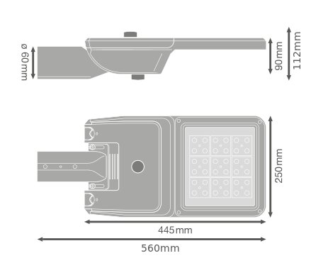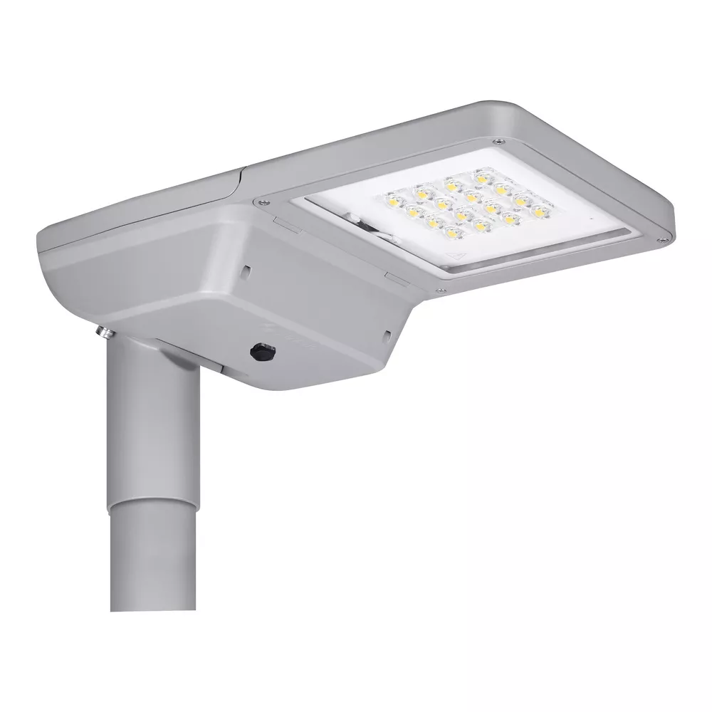 Rozsył strumienia świetlnego przystosowany do oświetlenia drogowego. Cechy produktu: Temperatura barwowa: 2200 K, 2700 K, 3000 K, 4000 K, 5700 K. Rozsył światła zoptymalizowany dla ulic o szerokości zbliżonej do wysokości słupa. Bardzo długa trwałość (L90/B10): do 100 000 godzin (przy 25 °C). W zestawie czop na słupy o średnicy 48-60 mm. Oprawa przystosowana do montażu bocznego lub na szczycie słupa. Regulacja kąta nachylenia +/- 15° bez otwierania obudowy. Wysoka skuteczność świetlna: do 180 lm/W. Zakres temperatury pracy: -40...50 °C. Wysoka ochrona przed przepięciami: do 10 kV (L/N-GND). Klasa ochronności: I i II. Certyfikat: ENEC+, ENEC, ZD4i RoHS, SASO. Stopień ochrony: IP66. Zalety produktu: Trwała konstrukcja i komponenty najwyższej jakości zapewniają długą trwałość. Szybkie i łatwe okablowanie oprawy dzięki otwieraniu obudowy bez użycia narzędzi i zaciskom przyciskowym. Wysoka jednorodność światła. Dostępne 5 barw światła, doskonale nadające się do oświetlenia bardzo zróżnicowanego otoczenia. Brak górnego współczynnika rozsyłu światła (ULOR 0%) w przypadku zamontowania pod kątem 0°. Automatyczne wyłączanie zasilania podczas otwierania obudowy. 5-letnia gwarancja. Obszary zastosowań: Oświetlenie drogowe, oświetlenie miejskie. Zastosowania zewnętrzne. Miejskie ulice, drogi przemysłowe, parkingi. Drogi klasy M, C i P wg. Wymagań PN- EN 13201. Strefy dla pieszych. Strefy publiczne. Przemysł. Porady dotyczące bezpieczeństwa: Wszystkie podłączenia elektryczne muszą być wykonane przez osobę wykwalifikowaną.. Uwaga, ryzyko porażenia prądem..