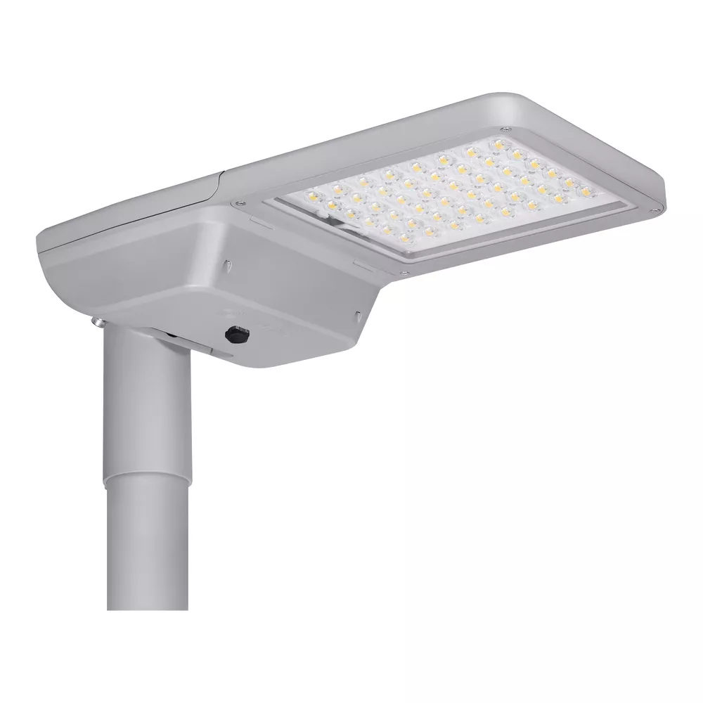 Rozsył strumienia świetlnego przystosowany do oświetlenia drogowego. Cechy produktu: Temperatura barwowa: 2200 K, 2700 K, 3000 K, 4000 K, 5700 K. Rozsył światła zoptymalizowany dla ulic o szerokości zbliżonej do wysokości słupa. Bardzo długa trwałość (L90/B10): do 100 000 godzin (przy 25 °C). W zestawie czop na słupy o średnicy 48-60 mm. Oprawa przystosowana do montażu bocznego lub na szczycie słupa. Regulacja kąta nachylenia +/- 15° bez otwierania obudowy. Wysoka skuteczność świetlna: do 180 lm/W. Zakres temperatury pracy: -40...50 °C. Wysoka ochrona przed przepięciami: do 10 kV (L/N-GND). Klasa ochronności: I i II. Certyfikat: ENEC+, ENEC, ZD4i RoHS, SASO. Stopień ochrony: IP66. Zalety produktu: Trwała konstrukcja i komponenty najwyższej jakości zapewniają długą trwałość. Szybkie i łatwe okablowanie oprawy dzięki otwieraniu obudowy bez użycia narzędzi i zaciskom przyciskowym. Wysoka jednorodność światła. Dostępne 5 barw światła, doskonale nadające się do oświetlenia bardzo zróżnicowanego otoczenia. Brak górnego współczynnika rozsyłu światła (ULOR 0%) w przypadku zamontowania pod kątem 0°. Automatyczne wyłączanie zasilania podczas otwierania obudowy. 5-letnia gwarancja. Obszary zastosowań: Oświetlenie drogowe, oświetlenie miejskie. Zastosowania zewnętrzne. Miejskie ulice, drogi przemysłowe, parkingi. Drogi klasy M, C i P wg. Wymagań PN- EN 13201. Strefy dla pieszych. Strefy publiczne. Przemysł. Porady dotyczące bezpieczeństwa: Wszystkie podłączenia elektryczne muszą być wykonane przez osobę wykwalifikowaną.. Uwaga, ryzyko porażenia prądem..