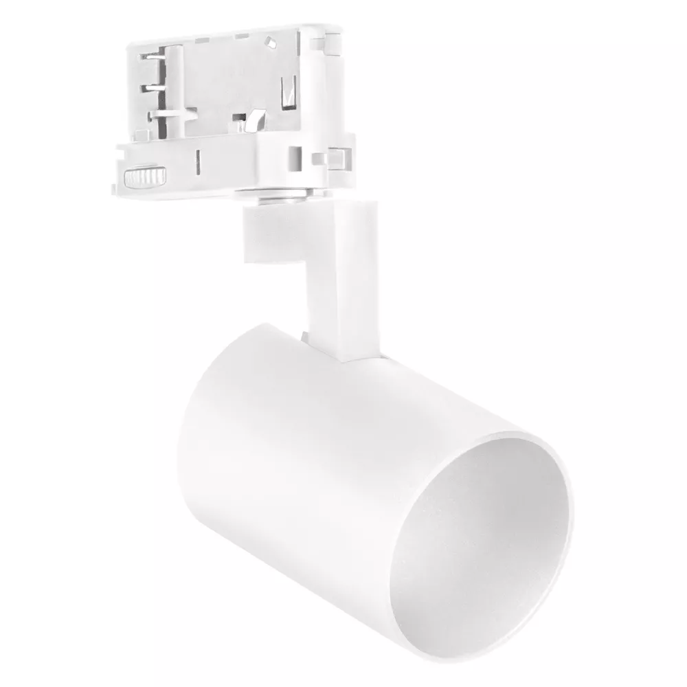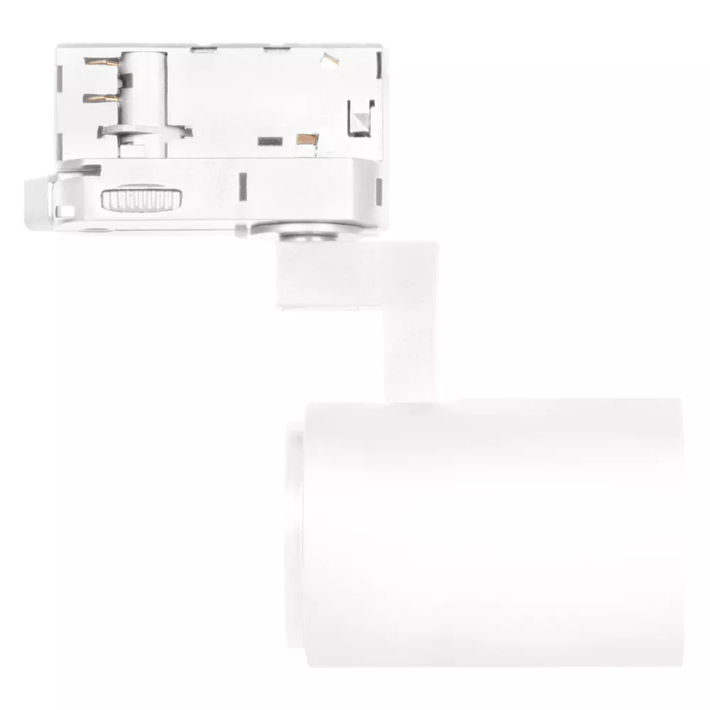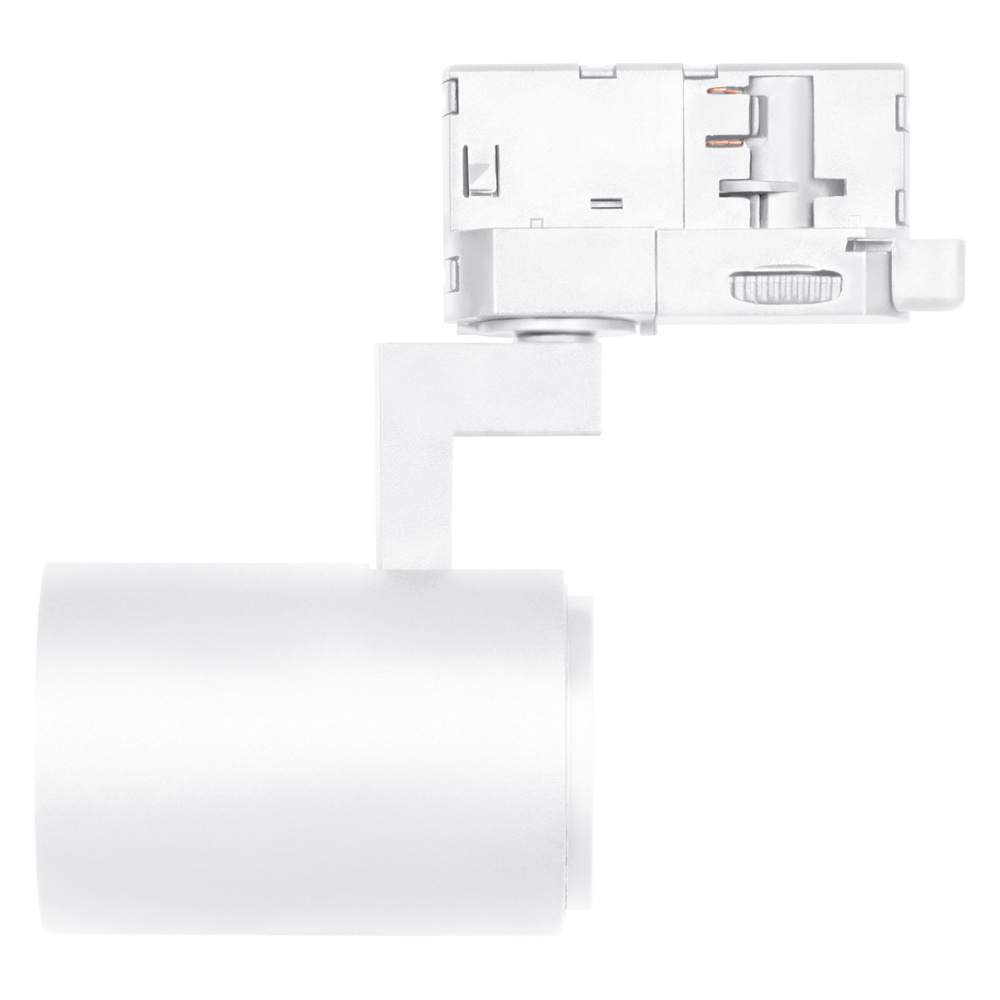 TRACKLIGHT SPOT 3-fazowy z trzonkiem Spot GU10. Cechy produktu: Trzonek: GU10. Kąt obrotu: 350°, kąt odchylenia: 90°. Trwała obudowa wykonana z odlewu aluminiowego. Dostępne w kolorze matowej bieli (np. RAL9003), matowej czerni (np. RAL9005). Zalety produktu: Gniazdo kompatybilne z lampami o mocy do 10W. Obszary zastosowań: Sklepy, przebieralnie, witryny sklepowe. Hotele, restauracje. Porady dotyczące bezpieczeństwa: Wszystkie podłączenia elektryczne muszą być wykonane przez osobę wykwalifikowaną.. Uwaga, ryzyko porażenia prądem..