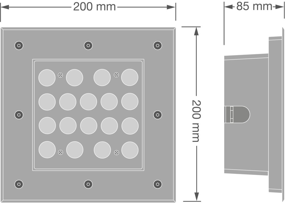 Architectural recessed ground lighting with durable, high-quality construction and various beam angle symmetrical optics. Cechy produktu: Nowoczesny minimalistyczny design. Trwałość (L80/B50): do 50 tys. godzin (przy 25°C). Temperatury barwowe: 3000 K, 4000 K. Stopień ochrony: IP67. Odporność na uderzenia: IK10. Zalety produktu: Bardzo wytrzymałe i trwałe. Nadaje się do użytku w miejscach publicznych dzięki wysokiej wartości IK. Wysokie oddawanie barw sprawia, że produkt ten jest idealnym rozwiązaniem do atrakcyjnych zadań oświetleniowych. Obszary zastosowań: Strefy publiczne. Oświetlenie architektoniczne. Dekoracyjne oświetlenie efektowe ścian. Oświetlenie fasady i budynku. Wyposażenie / Akcesoria: W zestawie znajduje się przewód łączący. W zestawie śruby montażowe.