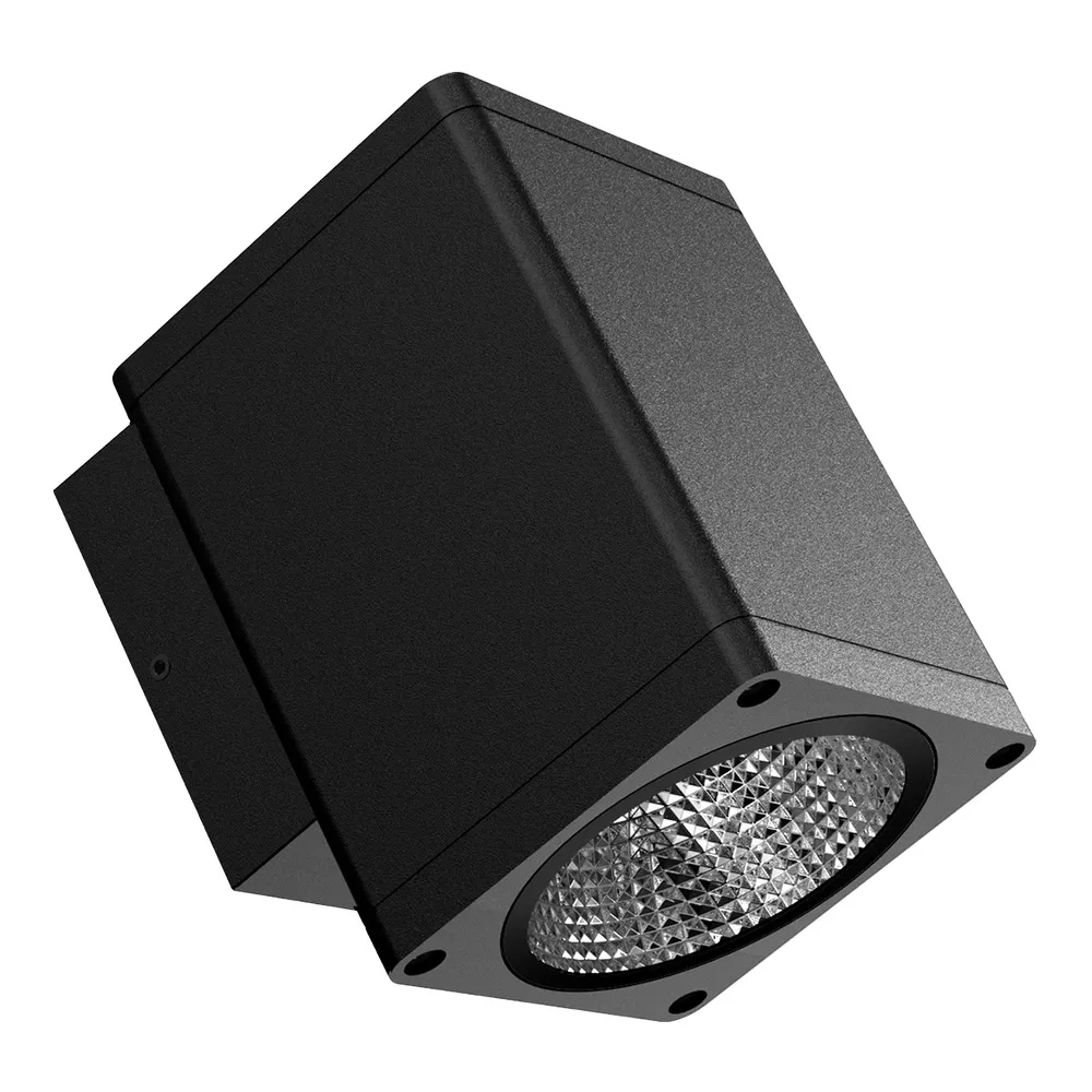 Architectural wall spotlight with single and double emission guaranteeing perfect illumination of any point of the surface and changeable optics. Cechy produktu: Nowoczesny minimalistyczny design. Trwałość (L80/B50): do 50 tys. godzin (przy 25°C). Temperatura barwowa: 3000 K, 4000 K. Stopień ochrony: IP65. Odporność na uderzenia: IK06. Zalety produktu: Wysokiej jakości aluminiowa obudowa. Mała oprawa punktowa do precyzyjnego oświetlenia. Funkcjonalna konstrukcja i minimalistyczny wygląd. Wysokie oddawanie barw sprawia, że produkt ten jest idealnym rozwiązaniem do atrakcyjnych zadań oświetleniowych. Obszary zastosowań: Strefy publiczne. Oświetlenie architektoniczne. Dekoracyjne oświetlenie efektowe ścian. Oświetlenie fasady i budynku. Wyposażenie / Akcesoria: W zestawie osłona zacisków AC. W zestawie śruby montażowe.