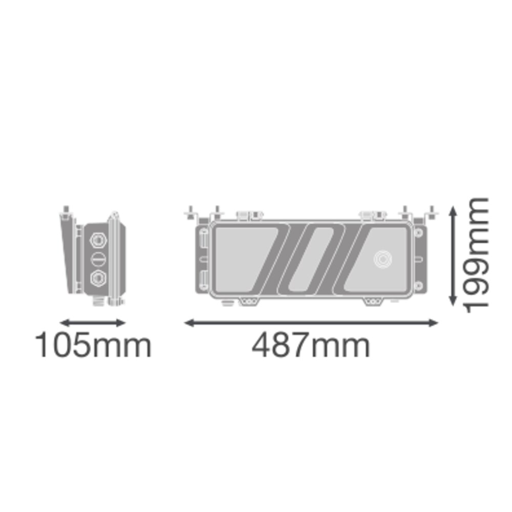 Skrzynki zasilające do zasilania opraw, zapewniające optymalne połączenie: On/Off, DALI, DMX. Cechy produktu: Szeroki zakres napięcia zasilającego: 200–480 V AC. Sprawność: ≤97 %, oszczędza energię i zmniejsza koszty eksploatacji. Integracja: do sterowania oświetleniem, DMX, 0–10 V. Membrana klimatyczna chroni przed wodą i przepuszcza powietrze. Ochrona przeciwprzepięciowa: do 20 kV, zwiększone bezpieczeństwo na stadionach. Oświetlenie awaryjne: Zgodność z normą EN 60598-2-22. Ochrona: zamykana skrzynka sterownika zapobiega manipulacji. Zalety produktu: Do ekstremalnych temperatur otoczenia: –40 °C do +50 °C (na zewnątrz), do +40 °C (w pomieszczeniach). Skrzynkę sterownika można zainstalować w odległości do 150 m od głowicy, centralna konserwacja, zmniejszona masa masztu. Wstępnie zamontowane złącza umożliwiają szybkie, wodoodporne okablowanie na miejscu (IP66). Standardowe sterowniki są zawsze łatwe do wymiany w celu prostej konserwacji. Pomocnicze zasilanie DALI do integracji czujników i sterowania, np. Smart City. Zoptymalizowana logistyka: oprawę i skrzynkę sterownika można zamówić osobno. Przyszłościowe: wysoka wydajność, długa trwałość i wiele interfejsów. Wytrzymała i odporna na warunki atmosferyczne: IP66 / IK08, ochrona antykorozyjna C5-M do trudnych warunków. Obszary zastosowań: Nadaje się do instalacji wewnętrznych i zewnętrznych. Porty/logistyka: oświetlenie głębokich i szerokich obszarów, idealne z ochroną antykorozyjną C5. Wyposażenie / Akcesoria: W zestawie przepusty kablowe, wstępnie zamontowane w zasilaczu. Porady dotyczące bezpieczeństwa: Wszystkie podłączenia elektryczne muszą być wykonane przez osobę wykwalifikowaną.. Uwaga, ryzyko porażenia prądem.. Produkt w klasie ochrony I. Wszystkie przewodzące prąd, metalowe części obudowy, które mogą absorbować napięcie podczas pracy lub podczas konserwacji w przypadku awarii, muszą być stale PODŁĄCZONE do przewodu uziemiającego..
