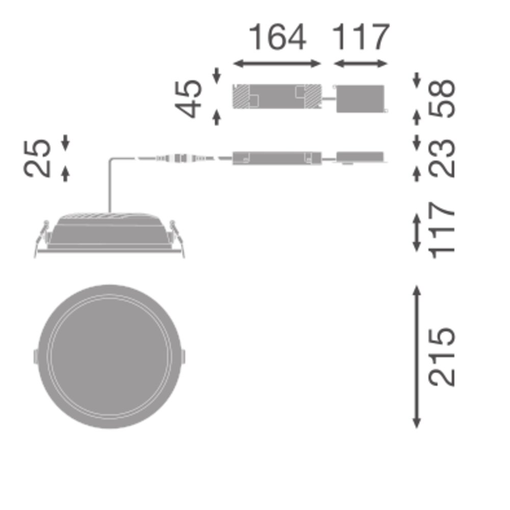 Oprawy typu downlight z obudową aluminiową, o wysokiej skuteczności świetlnej i niskim olśnieniem, zewnętrzny sterownik DALI-2 z monitorowaniem zużycia energii. Cechy produktu: Trwałość (L80-B10): do 100 000 h (przy 25°C). Jednorodność barwy światła ≤ 3 SDCM. Zewnętrzny zasilacz z funkcją Multi Lumen do 5220 lm. Oprawy aluminiowe z 3 różnymi wycięciami i odbłyśnikiem lustrzanym UGR ≤ 19. Bardzo jednorodny rozsył światła i zmniejszone olśnienie UGR ≤ 19. Zalety produktu: Oszczędność energii dzięki wysokiej skuteczności świetlnej systemu: do 145 lm/W. Możliwość okablowania przelotowego za pomocą dołączonego CONNECTOR BOX.. Ramka przednia wykonana z wysokiej jakości poliwęglanu obniżającego całkowitą masę oprawy. Równomierne światło o zminimalizowanym olśnieniu dzięki dostarczonemu w zestawie odbłyśnikowi i dyfuzorowi. Dobrze nadaje się do modernizacji przy użyciu pierścienia przedłużającego jako osobnego akcesorium. Certyfikat DALI-2 obejmujący części 251, 252, 253. Aplikacja Push DIM umożliwia łatwe sterowanie. Obszary zastosowań: Bezpośredni zamiennik opraw świetlówkowych. Biura, sale konferencyjne. Recepcje, hole, korytarze, windy. Wyposażenie / Akcesoria: Linka zabezpieczająca oprawę oświetleniową w zestawie. Stateczniki zewnętrzne w zestawie. Puszka podłączeniowa ze złączem 5-stykowym (w zestawie). Opcje SURFACE MOUNT FRAME dostępne są wyłącznie dla DALI version D200 i D250. Szare i czarne wymienne pierścienie dostępne jako osobne akcesoria. Pierścienie przedłużające są dostępne jako osobne akcesoria. Pierścień przedłużający D190 do modernizacji oprawy D150, pierścień przedłużający D240 do modernizacji oprawy D200. Porady dotyczące bezpieczeństwa: Wszystkie podłączenia elektryczne muszą być wykonane przez osobę wykwalifikowaną.. Uwaga, ryzyko porażenia prądem.. Oprawy nie nadają się do pokrywania materiałem termoizolacyjnym..