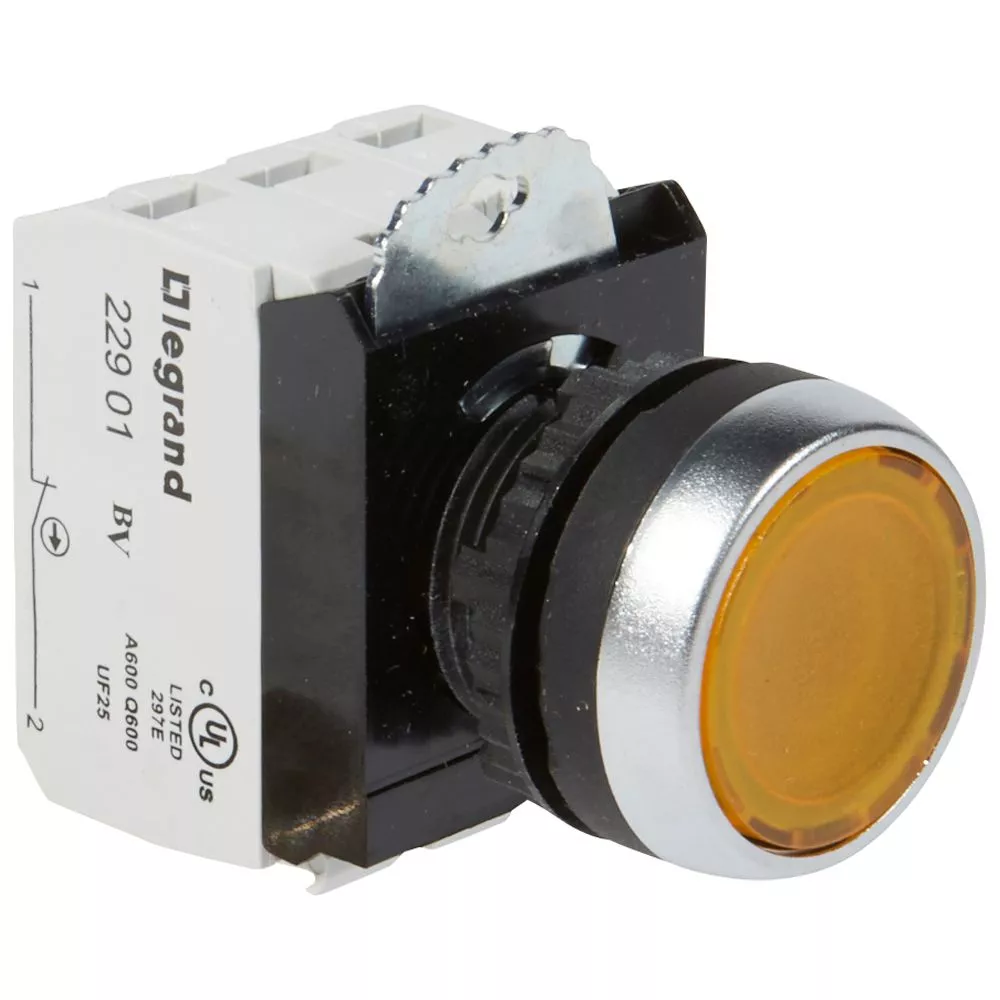 OSMOZ KOMPLET Z PODŚWIETLENIEM - GŁÓWKA PŁASKA ŻÓŁTA 24 V + UCHWYT + 1R+1Z, Legrand